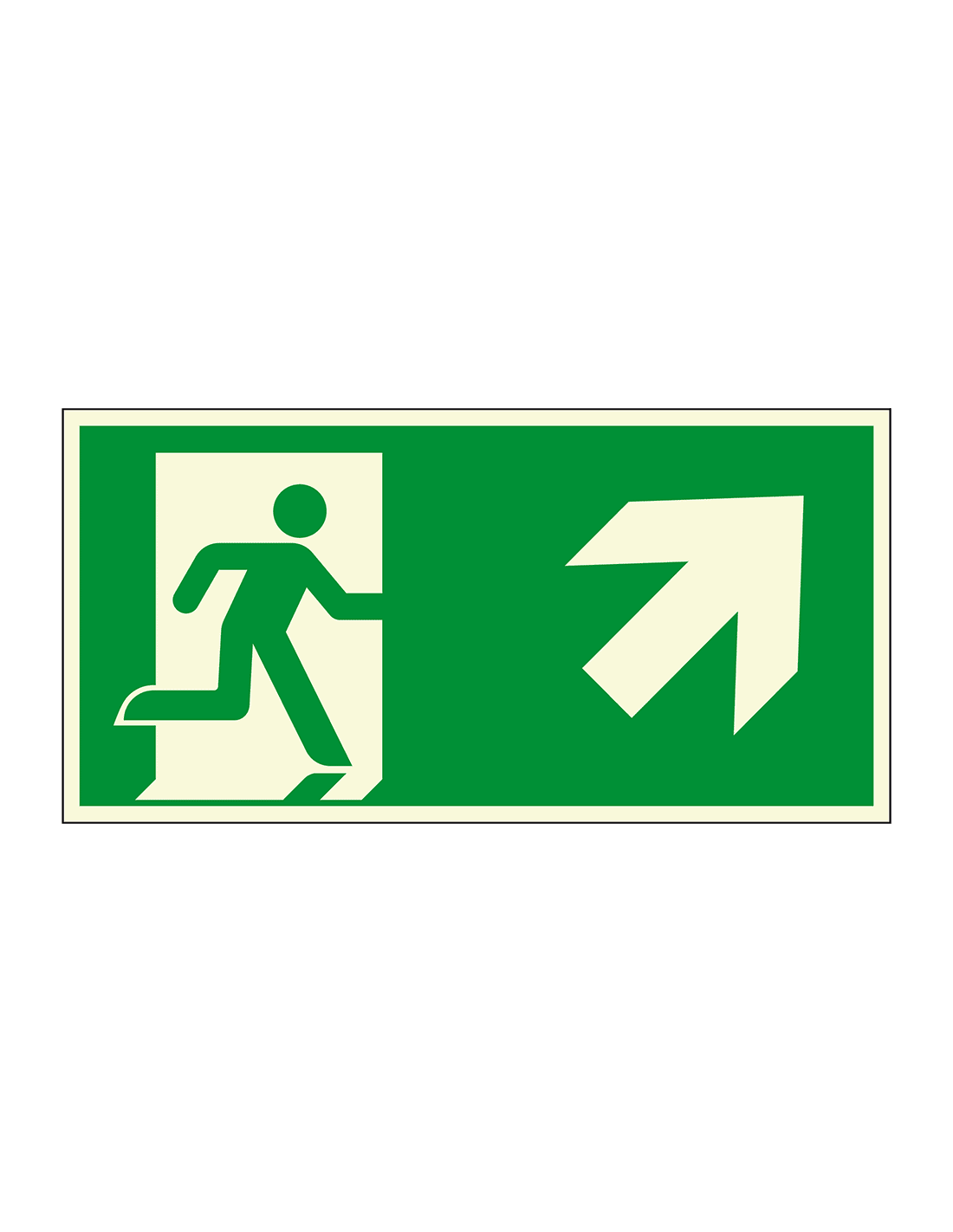 - Lichtgevend bord met pictogram nooduitgang en pijl naar rechtsboven