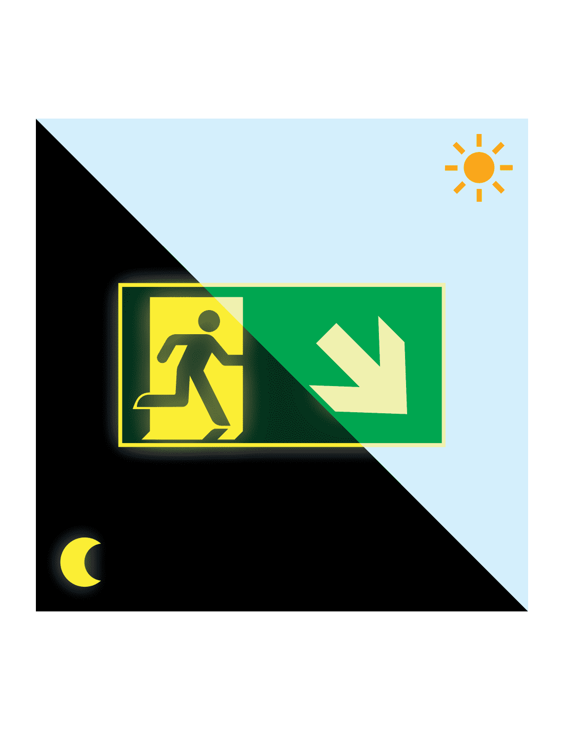 Belangrijkste kenmerken extra lichtgevend nooduitgang bord pijl rechtsonder