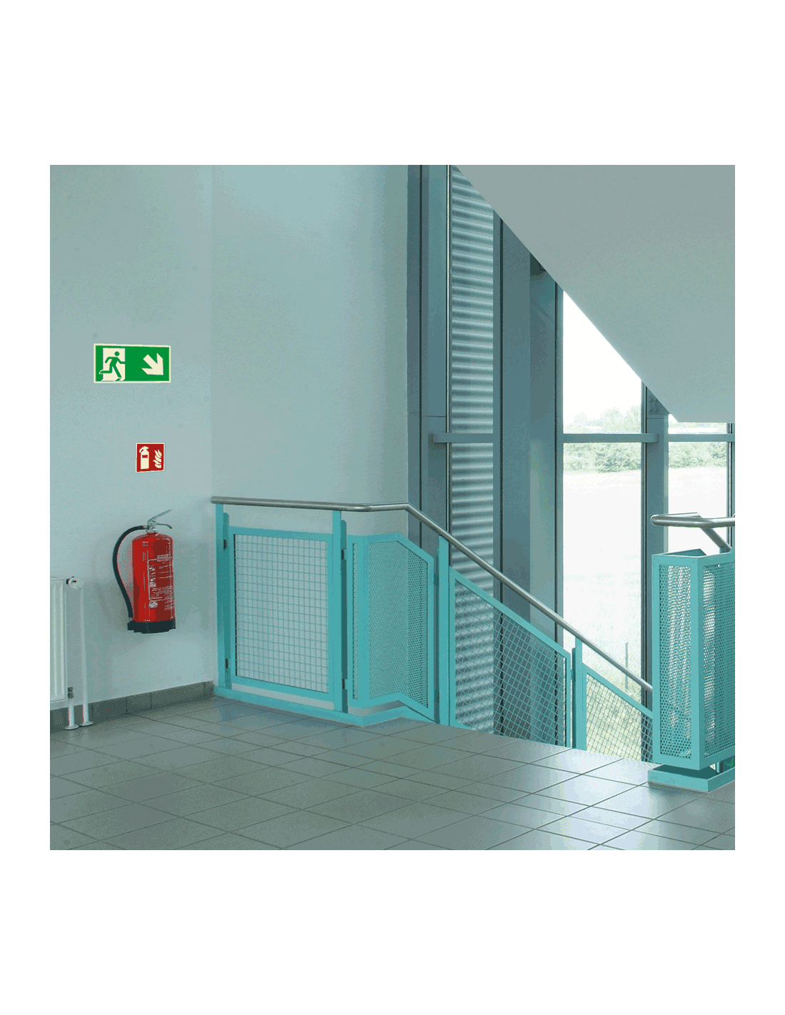 - Dit materiaal is geschikt voor ruimtes met gedempte of slechts tijdelijke verlichting; voor degenen die onder de BGR 216 vallen: hotels, ziekenhuizen, luchthavens, evenementenlocaties, fabrieken en magazijnen enz.