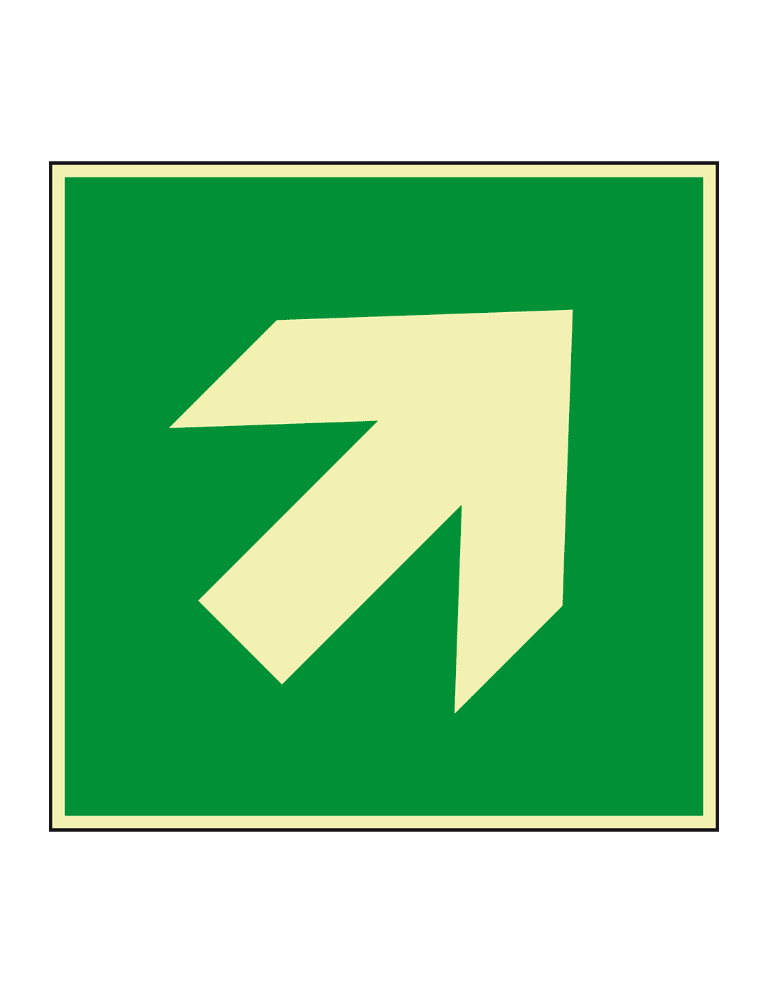Verder is het symbool nooduitgang richtingspijl diagonaal gekeurd volgens de laatste veiligheidsnorm. Dit is de norm DIN EN ISO 3864. Het bord is gemaakt van aluminium, wat hem geschikt maakt voor binnen- en buitengebruik. Bovendien is het bord temperatuurbestendig van -50 tot +130 °C en resistent tegen oplosmiddel en veel chemicaliën. Het bord is licht, stabiel, niet breekbaar en niet ontvlambaar.
