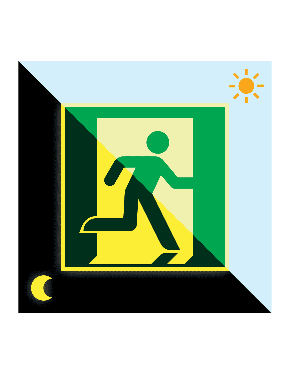 - Lichtgevend bord met pictogram nooduitgang rechts