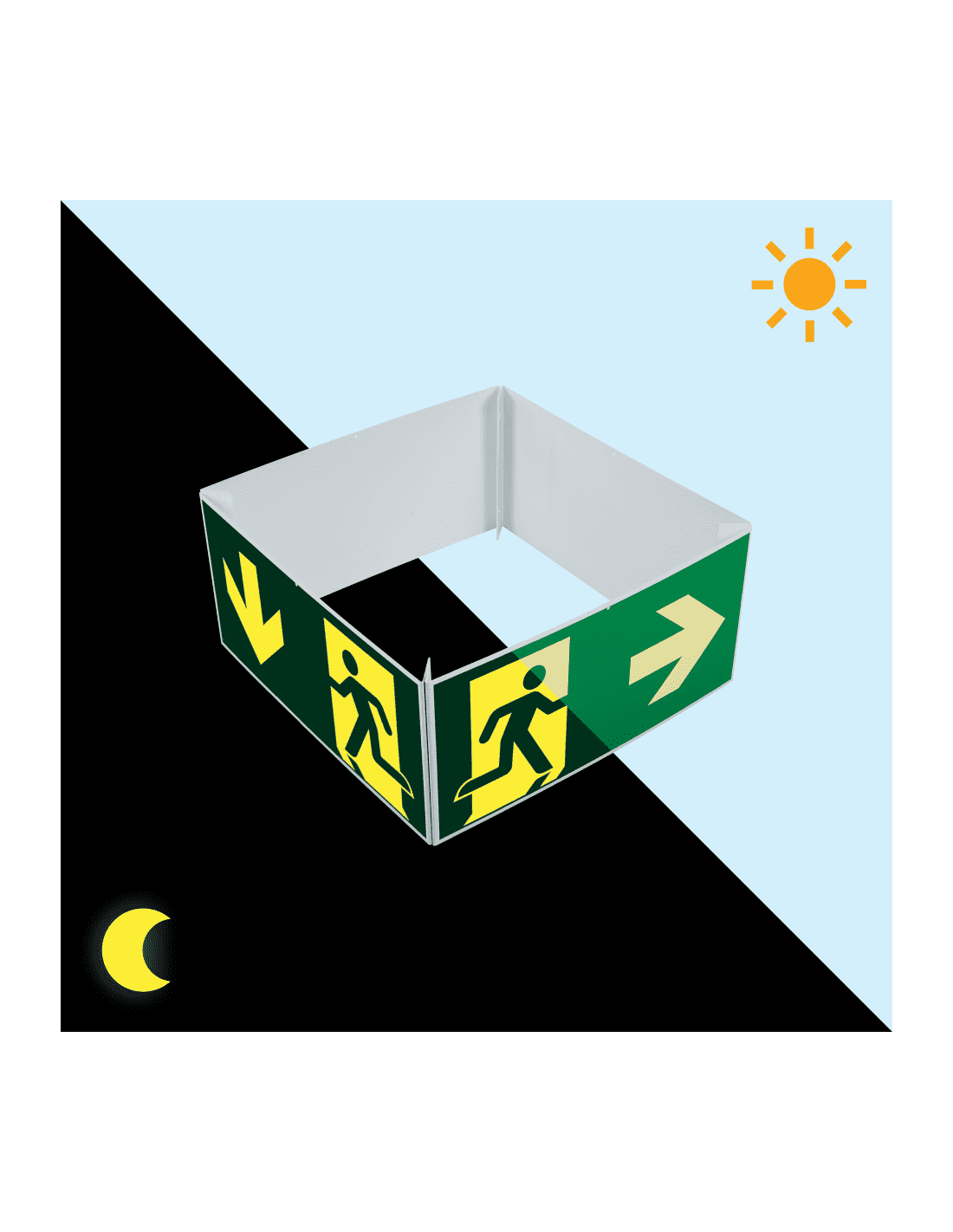 Belangrijkste informatie extra lichtgevende nooduitgang kubus
