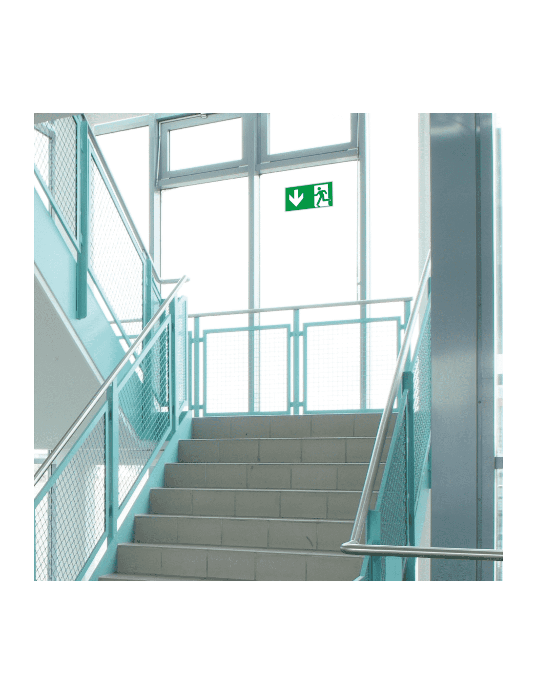 - Rechthoekig bord met pictogram nooduitgang beneden