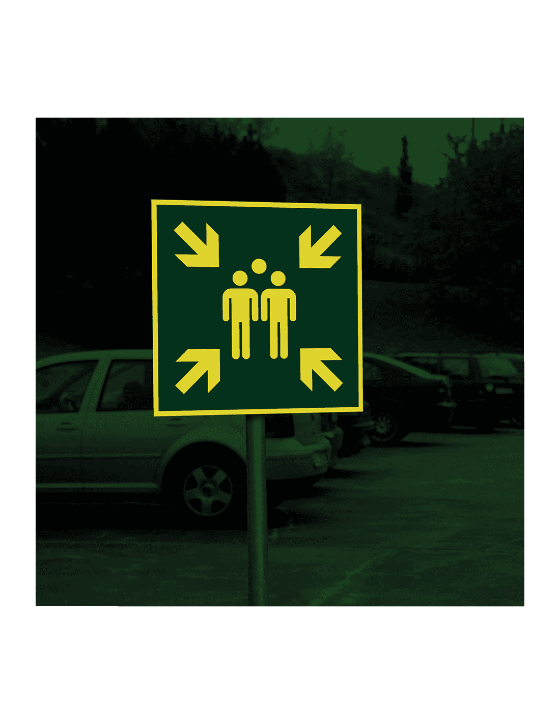 Dit extra lichtgevend verzamelplaats bord laat zien dat er op deze plek een verzamelplaats is. Op die manier zorg je ervoor dat mensen deze plek snel kunnen vinden in het geval van een noodsituatie en weten waar ze moeten verzamelen.