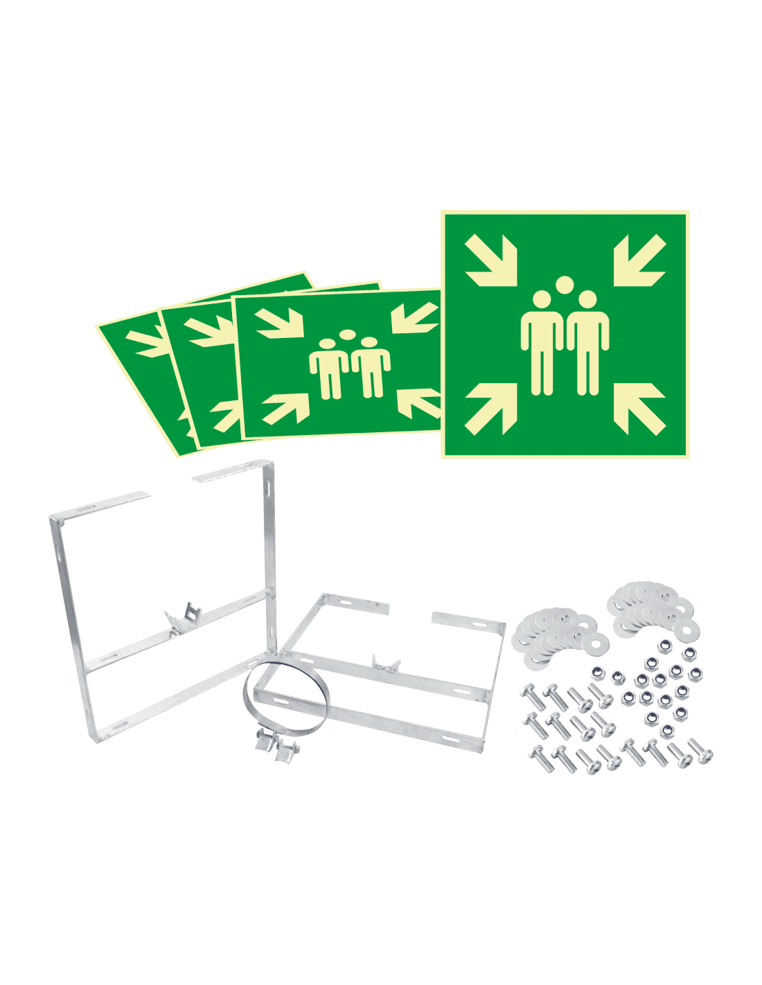Deze Extra lichtgevende verzamelplaats bordenset - aluminium kun je gebruiken om een verzamelplaats op een duidelijke manier aan te geven. Deze set bestaat uit 4 verzamelplaats borden van aluminium materiaal en een afmeting van 400 x 400 mm. De borden beschikken over 4 boorgaten in de hoeken.