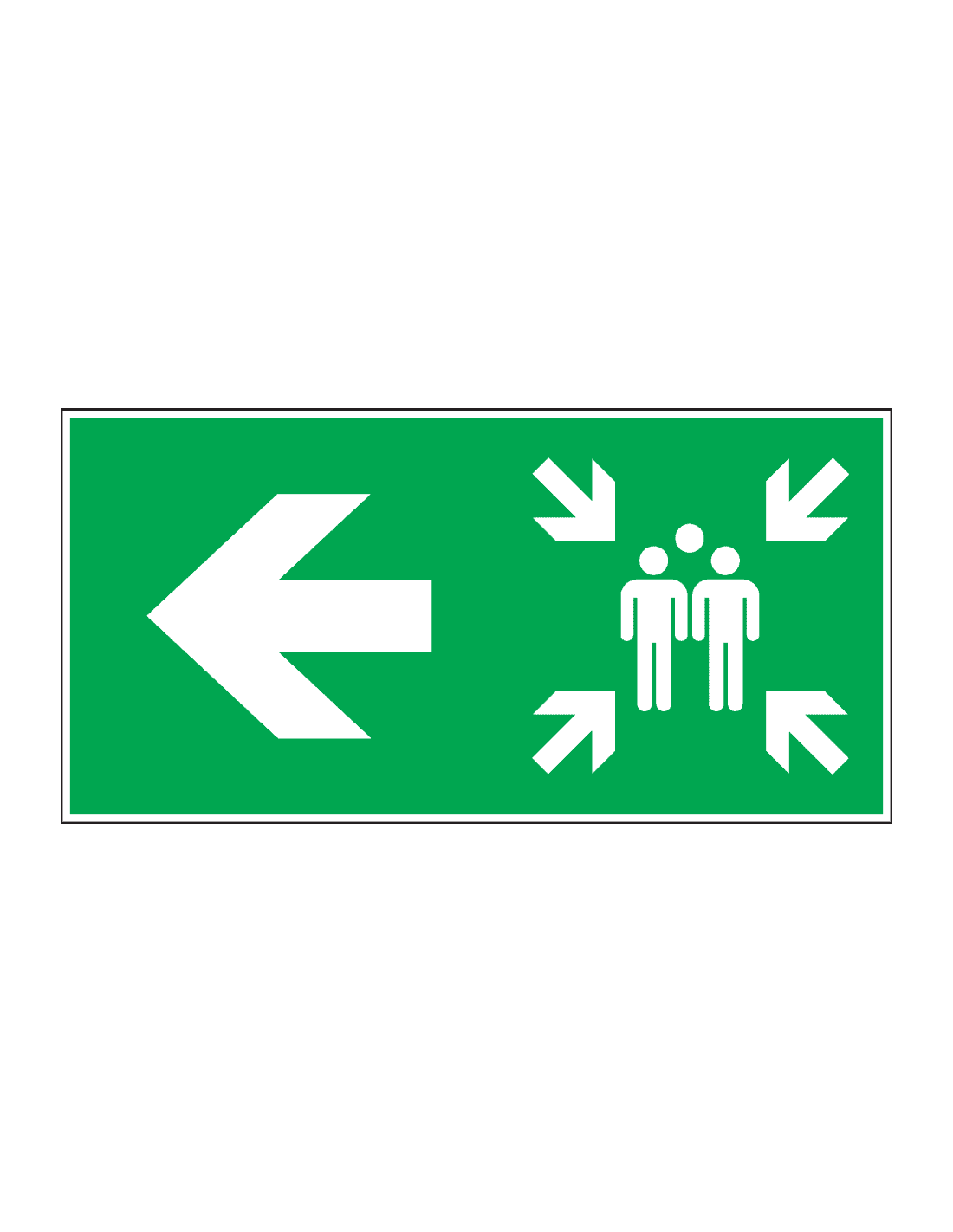 Het verzamelplaats bord met pijl links kun je gebruiken om aan te geven dat mensen de verzamelplaats kunnen vinden door de pijl te volgen. Op deze manier zorg je ervoor dat mensen de verzamelplaats in geval van nood snel kunnen vinden.