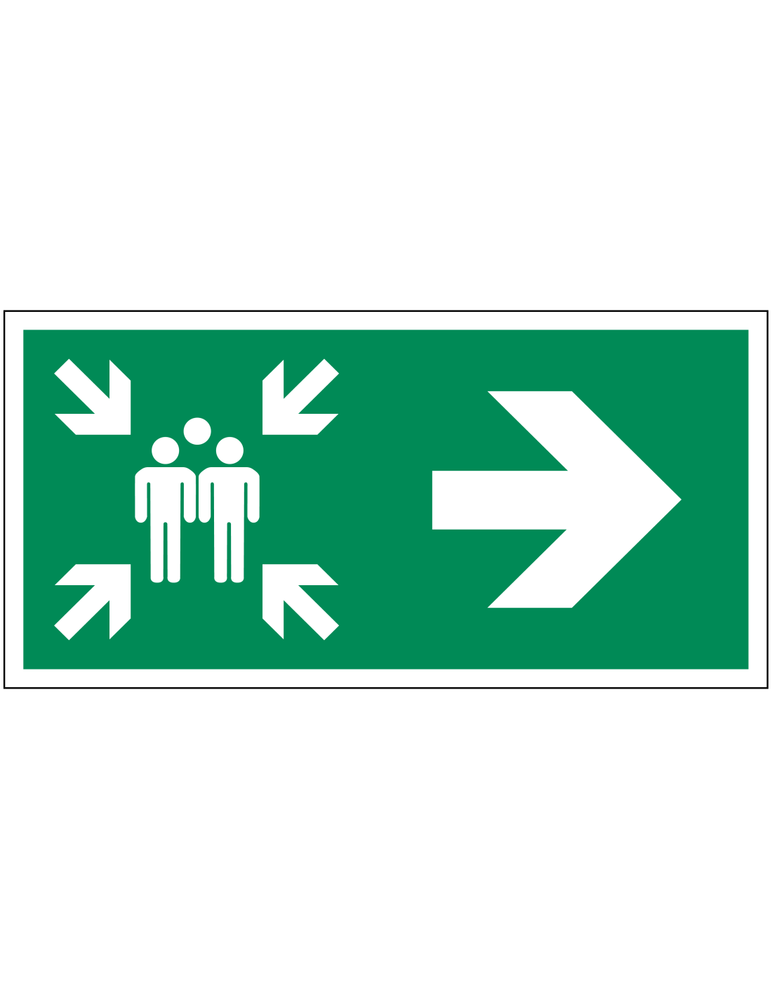 - Rechthoekig bord met symbool verzamelplaats en pijl naar rechts