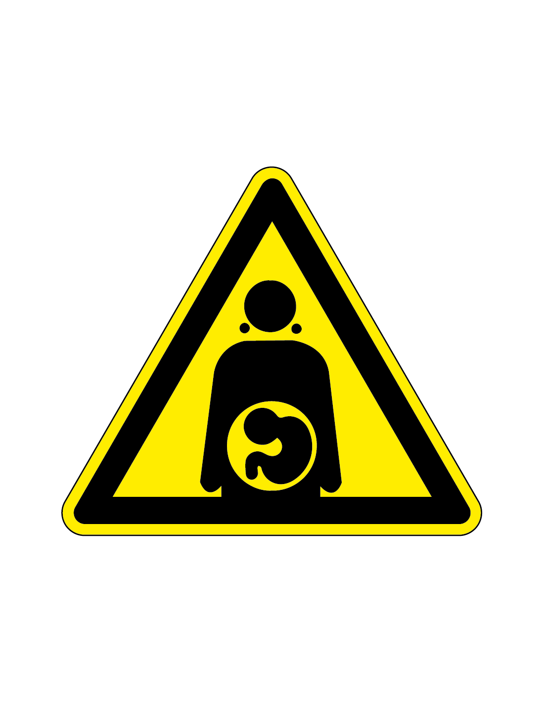 Dit gevaar bij zwangerschap bord laat zien dat er gevaar is voor zwangere vrouwen. Dit pictogram kan betrekking hebben op verschillende soorten gevaren. Denk hierbij aan optische straling, fysieke risico's of voedsel.