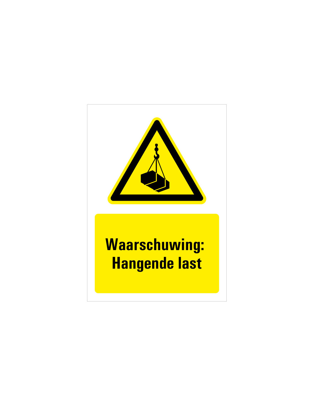 - Rechthoekig staand bord met hangende last pictogram en tekst