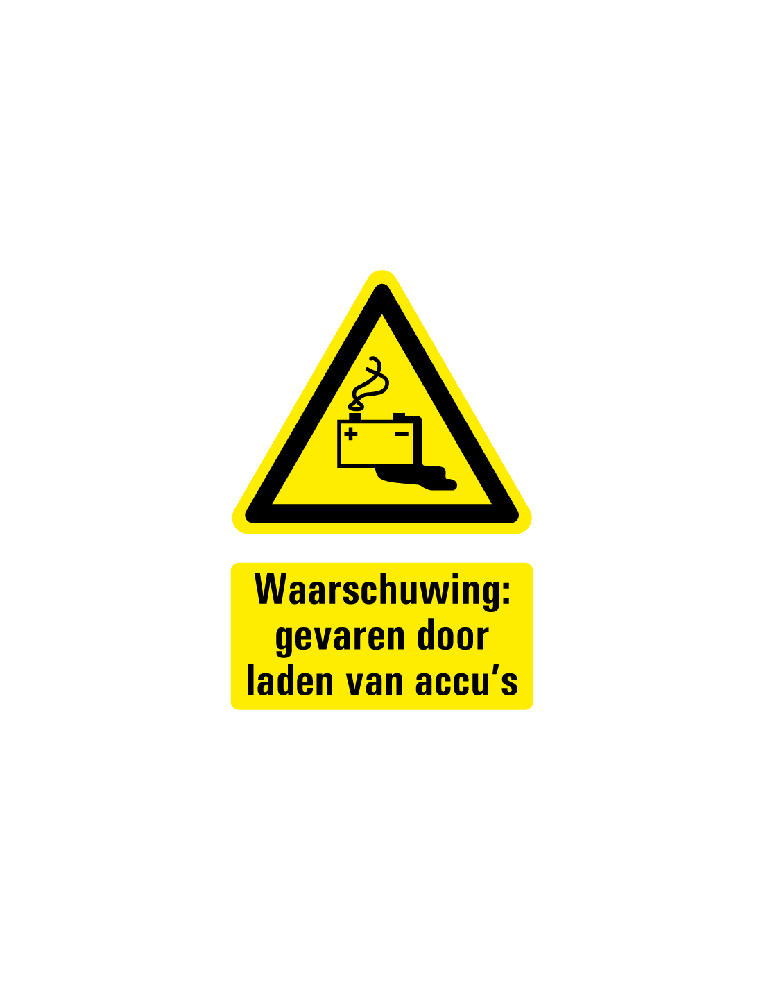 Belangrijkste kenmerken bord met tekst met waarschuwing voor gevaren door het opladen van accu's