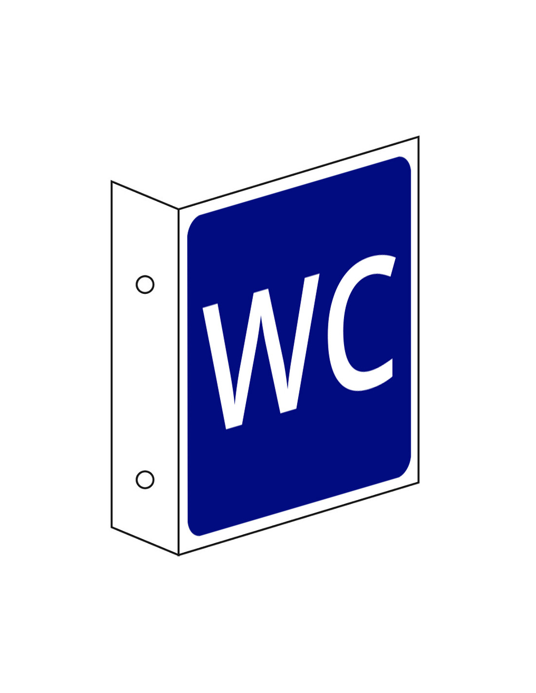 Dit haakse bord wc is om de toiletten aan te geven. Het bord is eenvoudig te monteren door de twee boorgaten van 5 millimeter. Het bord is gemaakt van PVC. Dit maakt het bestand tegen vocht en zelfs zwakke zuren. Bovendien is het bord vlam vertragend. Hierdoor is het bord geschikt om binnen en buiten te gebruiken.