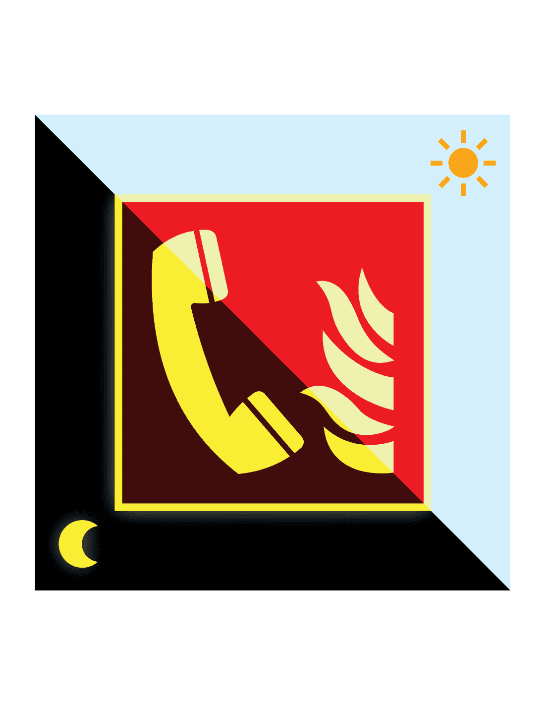 Deze extra lichtgevende sticker laat door middel van het alarmtelefoon teken zien waar de alarmtelefoon zich bevindt. Zo kunnen mensen in geval van een noodsituatie gemakkelijk zien waar de alarmtelefoon te vinden is. Dit kan mensenlevens redden.
