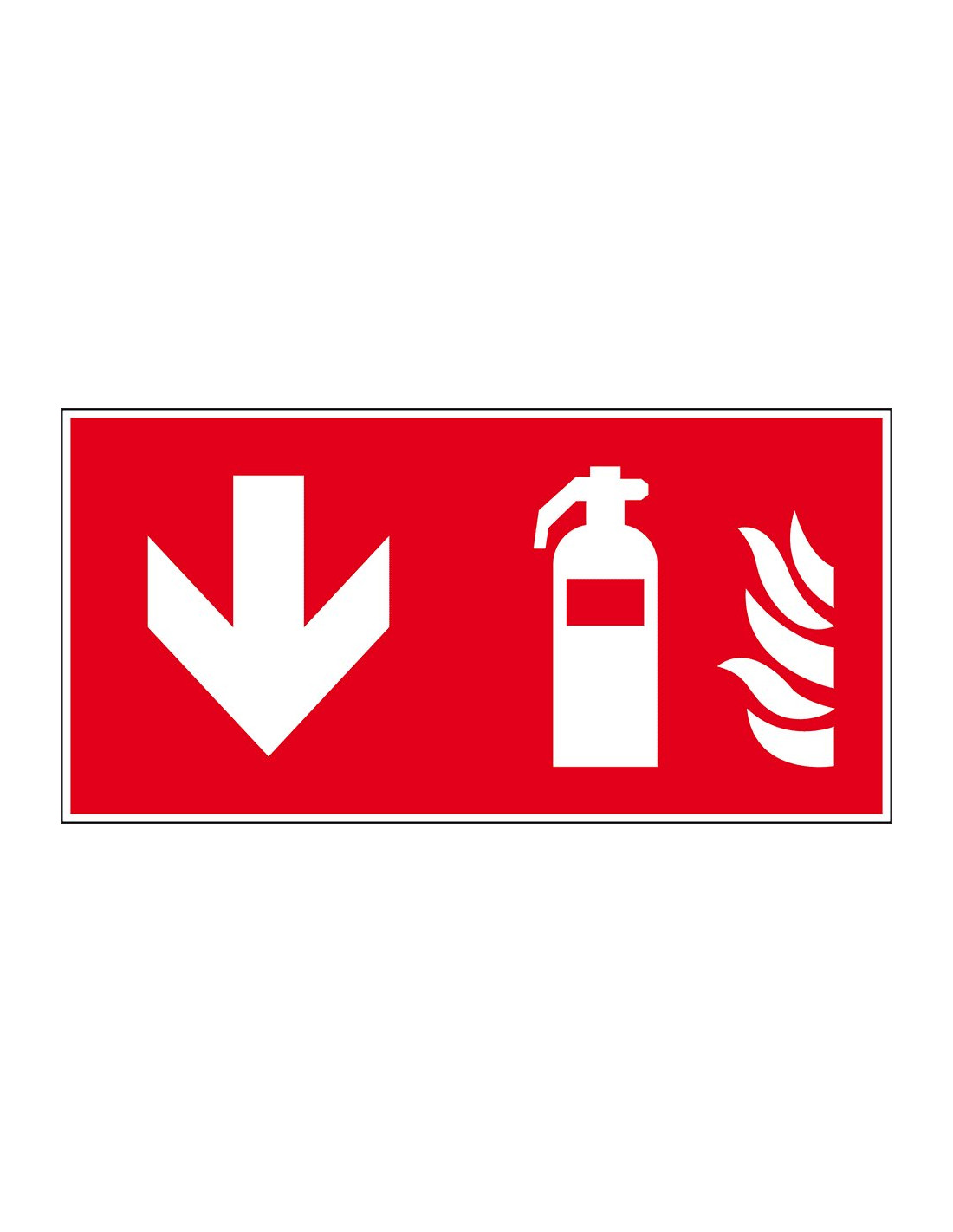 - Rechthoekige sticker met pictogram brandblusser en een pijl naar beneden