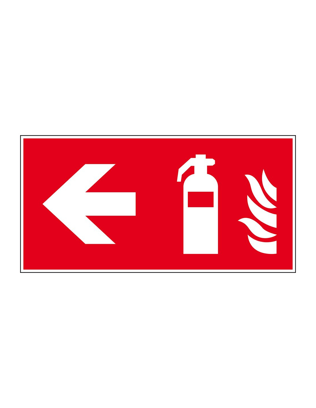 - Rechthoekige sticker met pictogram brandblusser en een pijl naar links