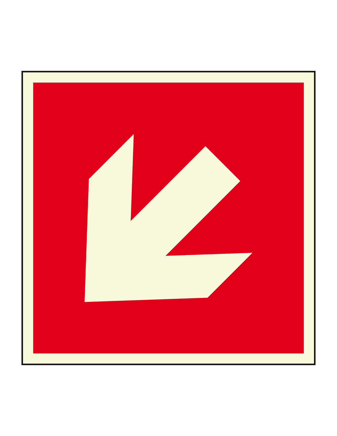 De Extra lichtgevende brand richtingspijl sticker schuin, ISO 7010, A045R kun je in combinatie met een ander brandpictogram gebruiken om te laten zien waar een brandbestrijdingsmiddel te vinden is. Op die manier zorg je voor een veilige omgeving in geval van brand.
