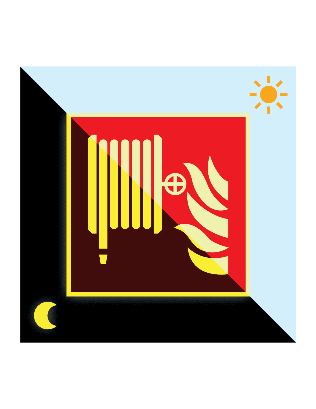 Deze extra lichtgevende sticker laat door middel van het brandslang pictogram zien waar de brandslang zich bevindt. Zo kunnen mensen in geval van een noodsituatie gemakkelijk zien waar de brandslang te vinden is. Dit kan mensenlevens redden.