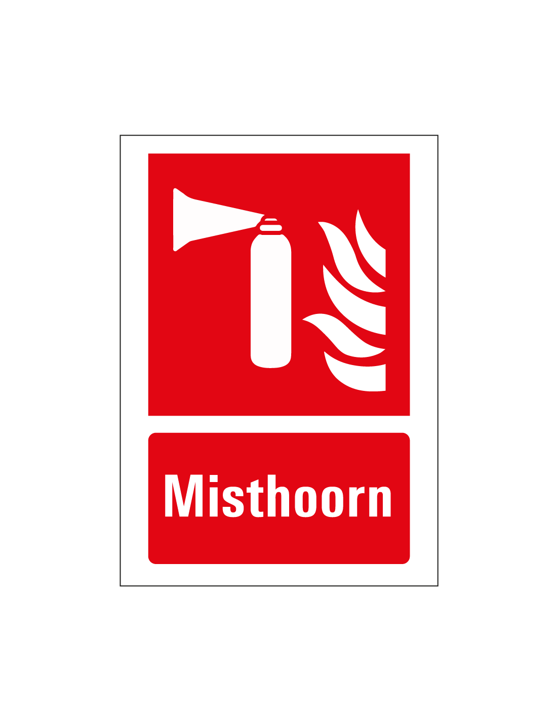 - Rechthoekige sticker met symbool misthoorn en tekst misthoorn