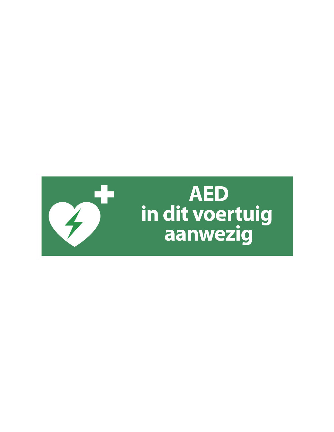 De sticker AED in dit voertuig aanwezig geeft aan dat er in het betreffende voertuig een defibrillator aanwezig is. Een defibrillator kan een cruciale factor zijn bij een reanimatie.