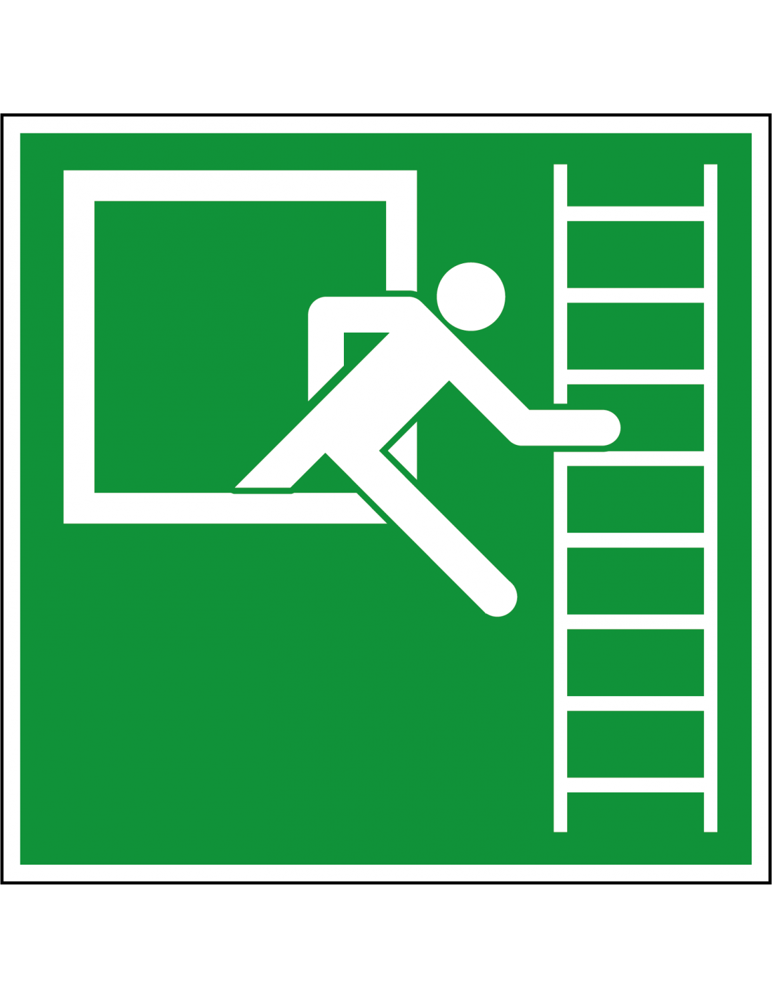 - Vierkante sticker met pictogram noodvenster met vluchtladder rechts