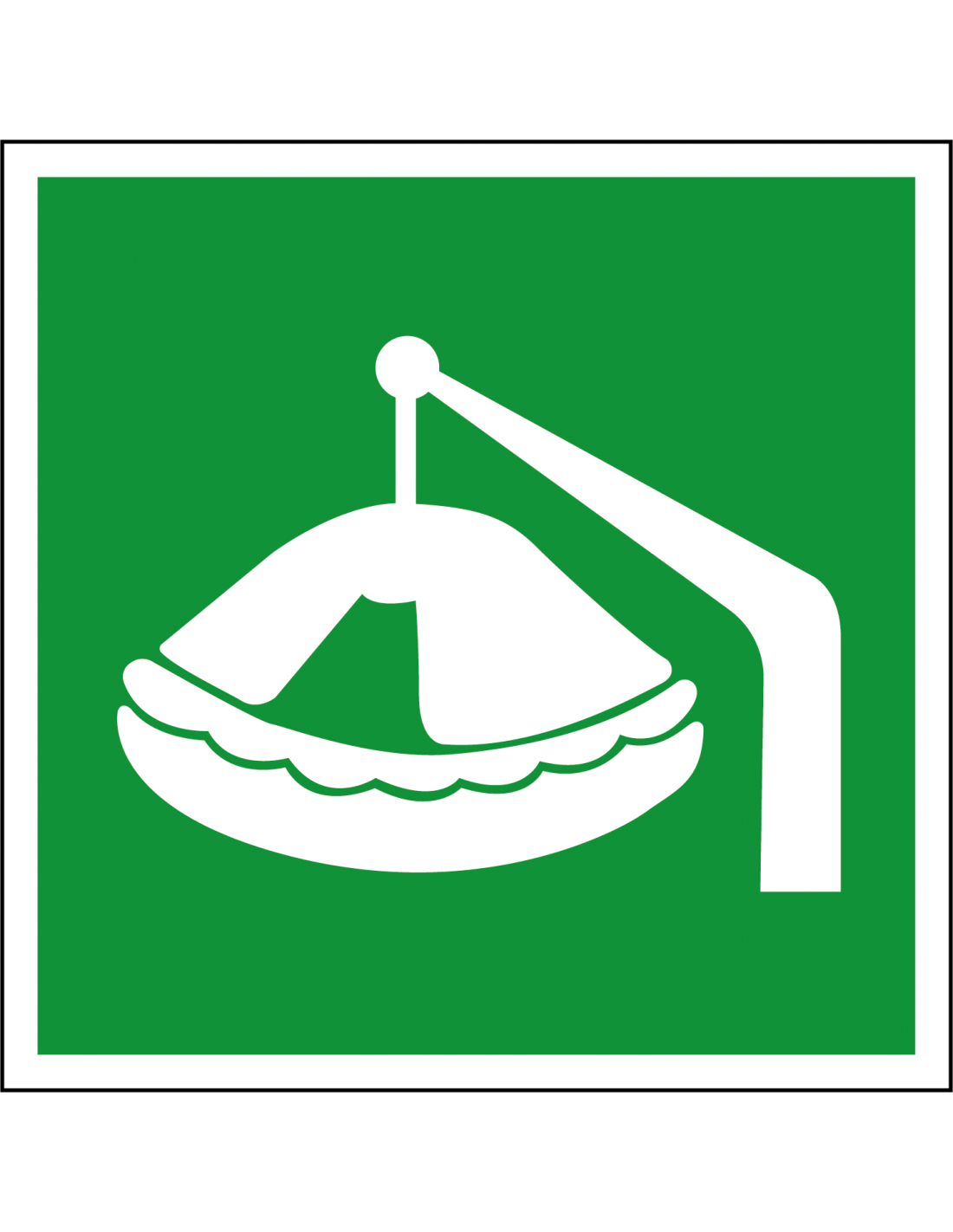 Wanneer u wilt aangeven dat hier een plek met een overlevingsvlot davit, is onze sticker hier ideaal voor. Dit noodgeval pictogram is gemaakt van zelfklevende folie en voldoet aan de laatste veiligheidseisen. Dit zijn ASR A1.3 E039, DIN EN ISO 7010 E039.