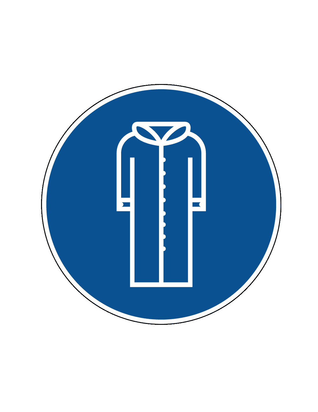 Deze sticker laat door middel van een pictogram met een overjas zien dat er sprake is van een bepaald gebod. Dit symbool kunt u gebruiken wanneer u wilt aangeven dat het verplicht is voor personen om een overjas te dragen.