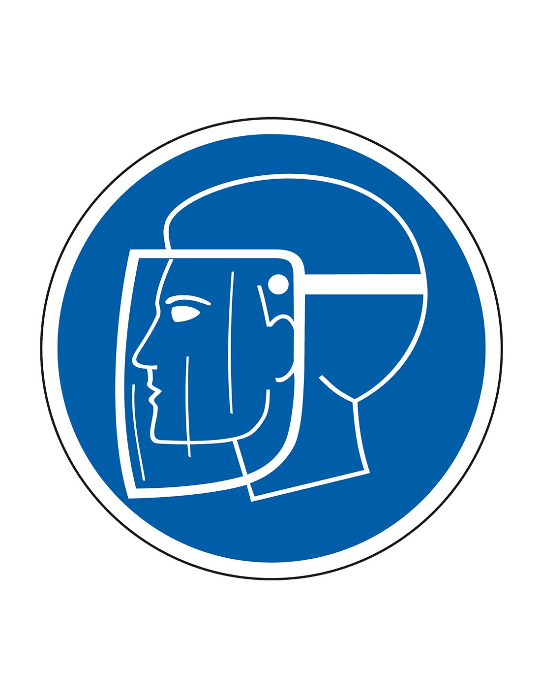- Ronde sticker met pictogram gelaatsbescherming verplicht