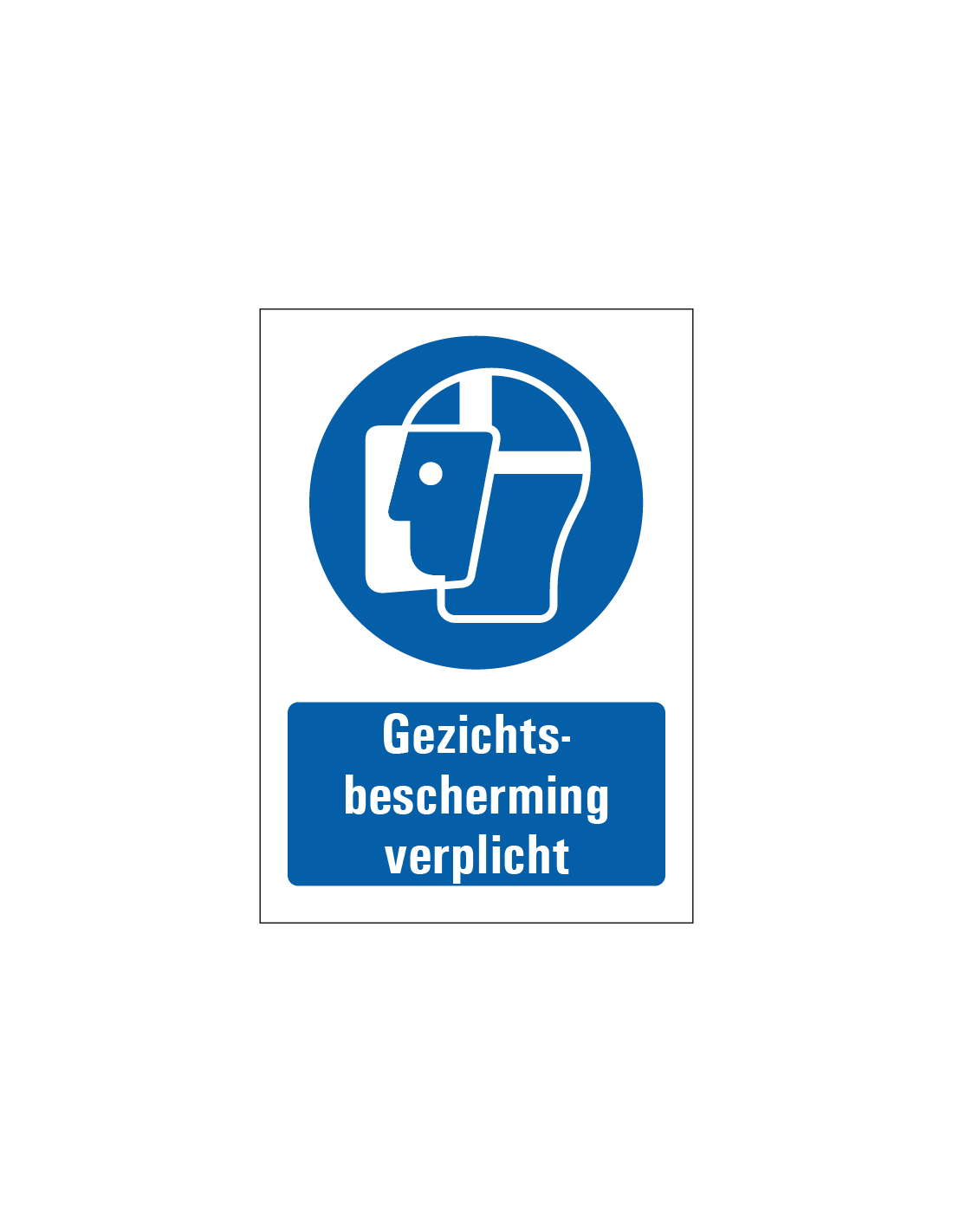 De sticker met tekst gezichtsbescherming verplicht geeft aan dat het niet wordt gewaardeerd om zonder gezichtsbescherming te lopen. De Nederlandse tekst maakt nog duidelijker wat het pictogram inhoudt. Dit voorkomt tevens misverstanden. De sticker is verkrijgbaar in meerdere A-formaten en is gemaakt van polystyreen.