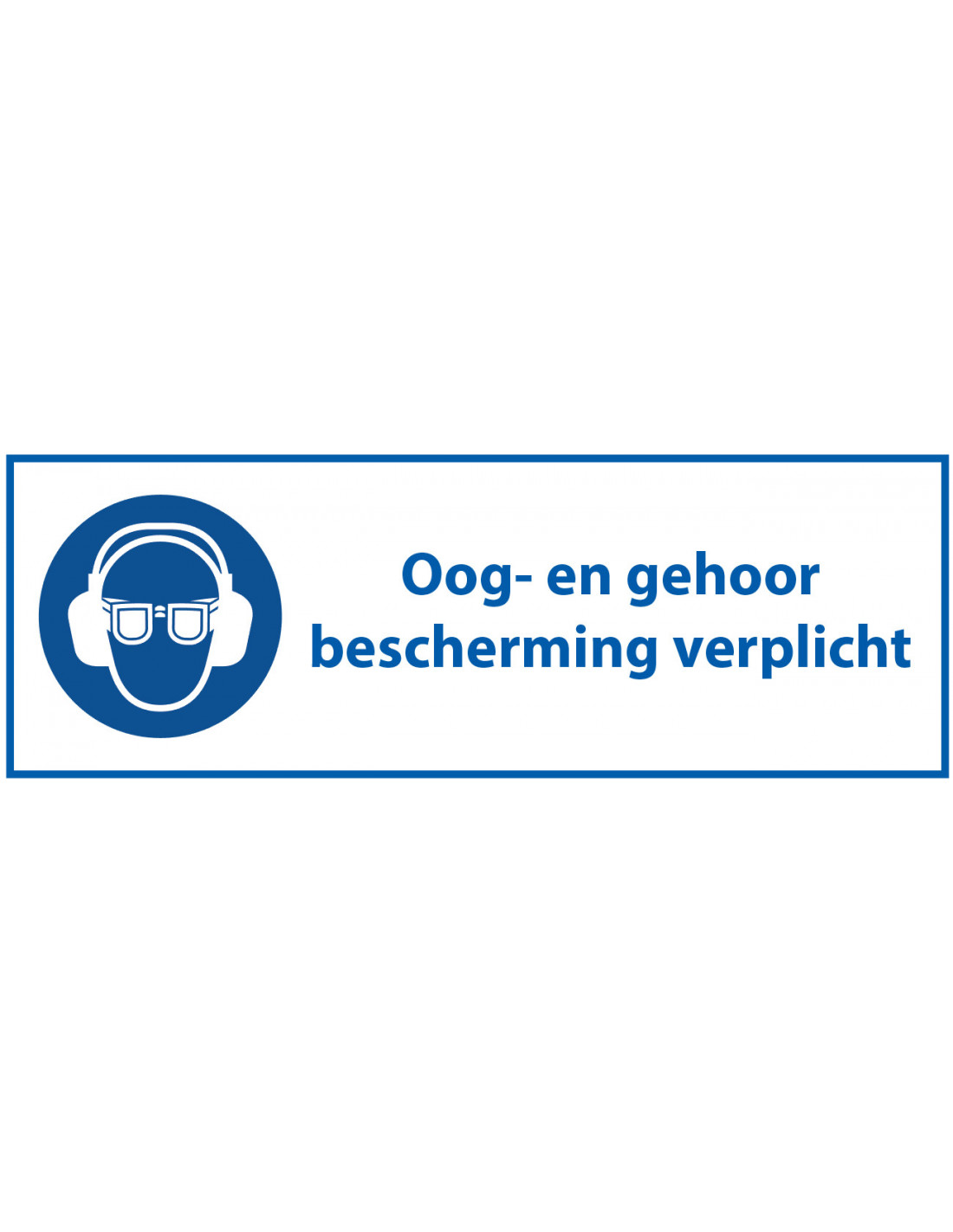 Deze sticker met tekst oog- en gehoorbescherming verplicht geeft aan dat oog- en gehoorbescherming verplicht is op deze locatie.