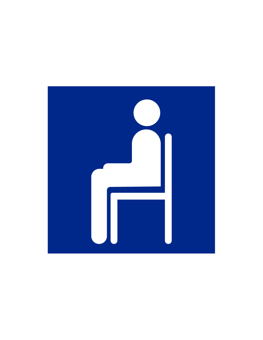 Wanneer u ergens een zitplaats heeft is het van groot belang om dit duidelijk aan te geven. Zo kunnen mensen deze gemakkelijk vinden. Dit pictogram is gemaakt van zelfklevende folie.