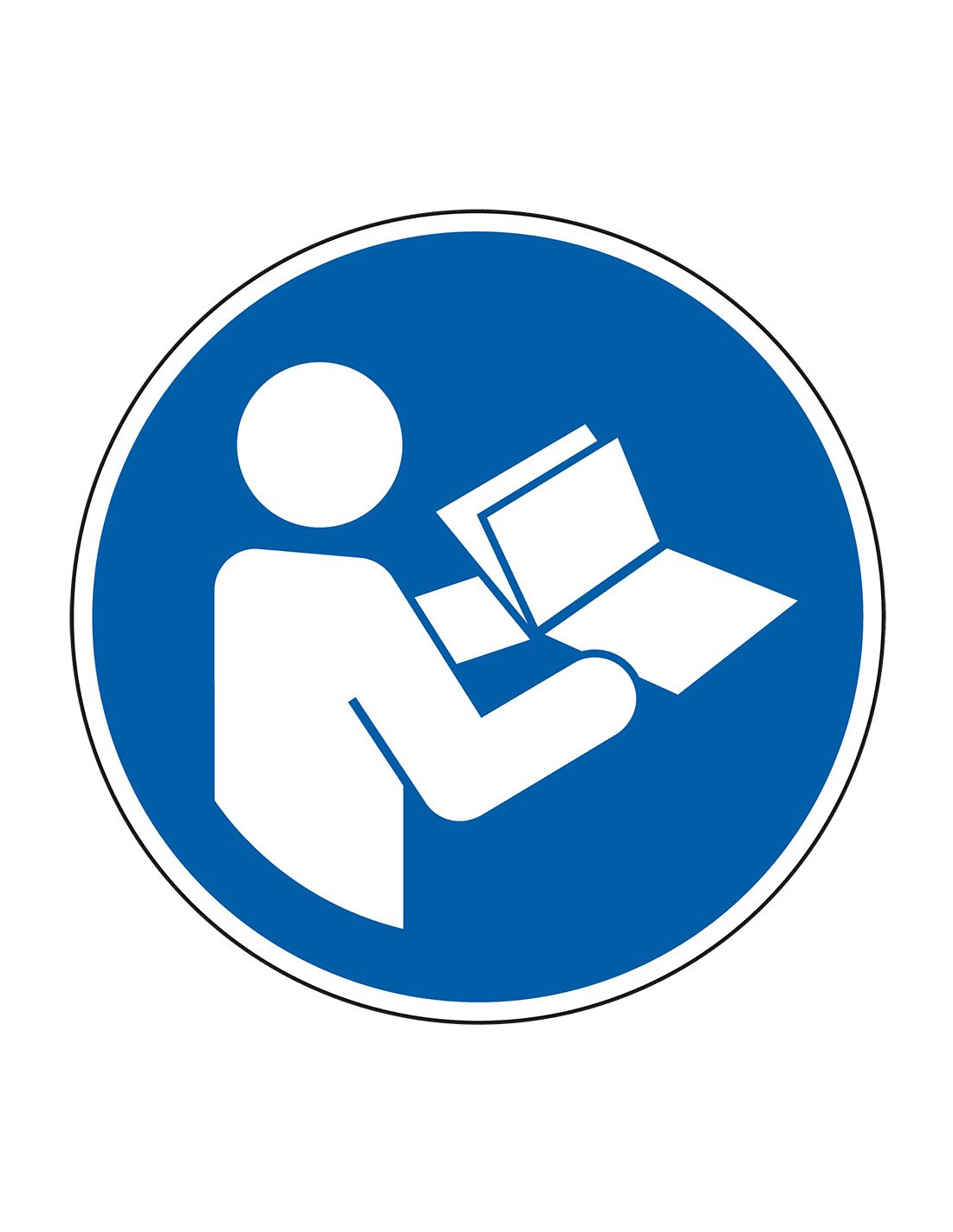 Wanneer u wilt aangeven dat er een gebod geldt om de handleiding te lezen, is de gebruiksaanwijzing lezen sticker ideaal. Dit gebodspictogram is gemaakt van zelfklevende folie en voldoet aan de laatste veiligheidseisen. Dit zijn ASR A1.3 M002, DIN EN ISO 7010 M002.