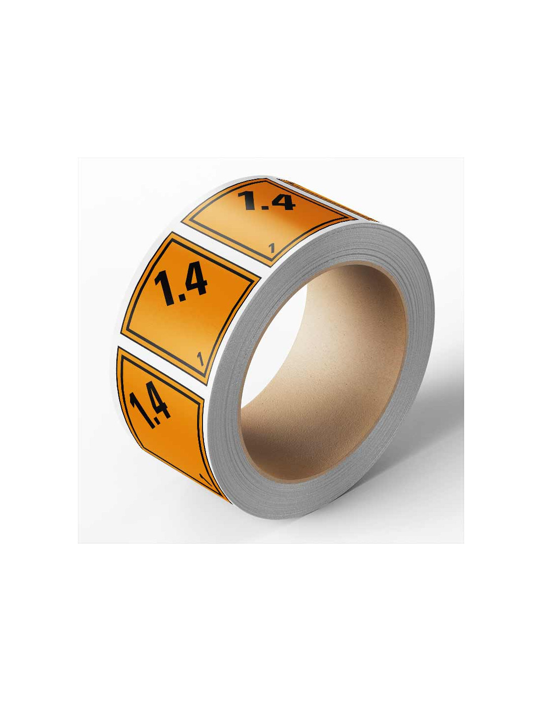 De ADR klasse 1.4 sticker explosieve stoffen papier op rol is ideaal om aan te geven dat er gering gevaar voor explosieve stoffen is. De stickers zijn gemaakt van zelfklevend papier en geschikt voor binnen- en kortstondig buitengebruik.