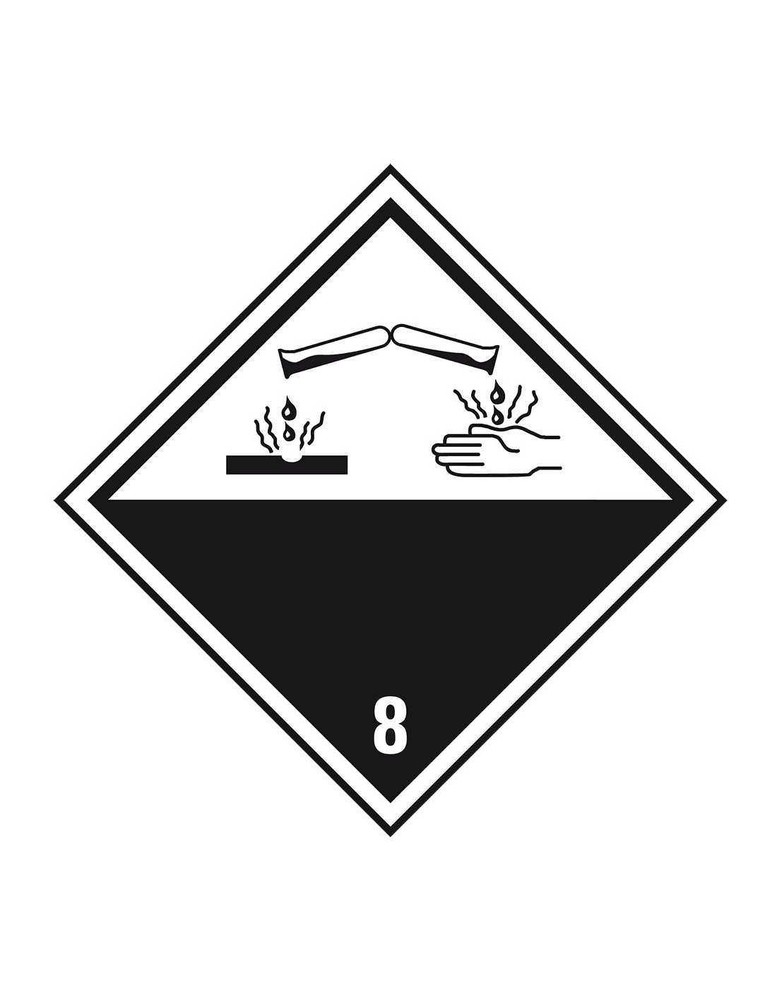 Belangrijkste kenmerken ADR sticker klasse 8 bijtende stoffen, zeewaterbestendig op rol