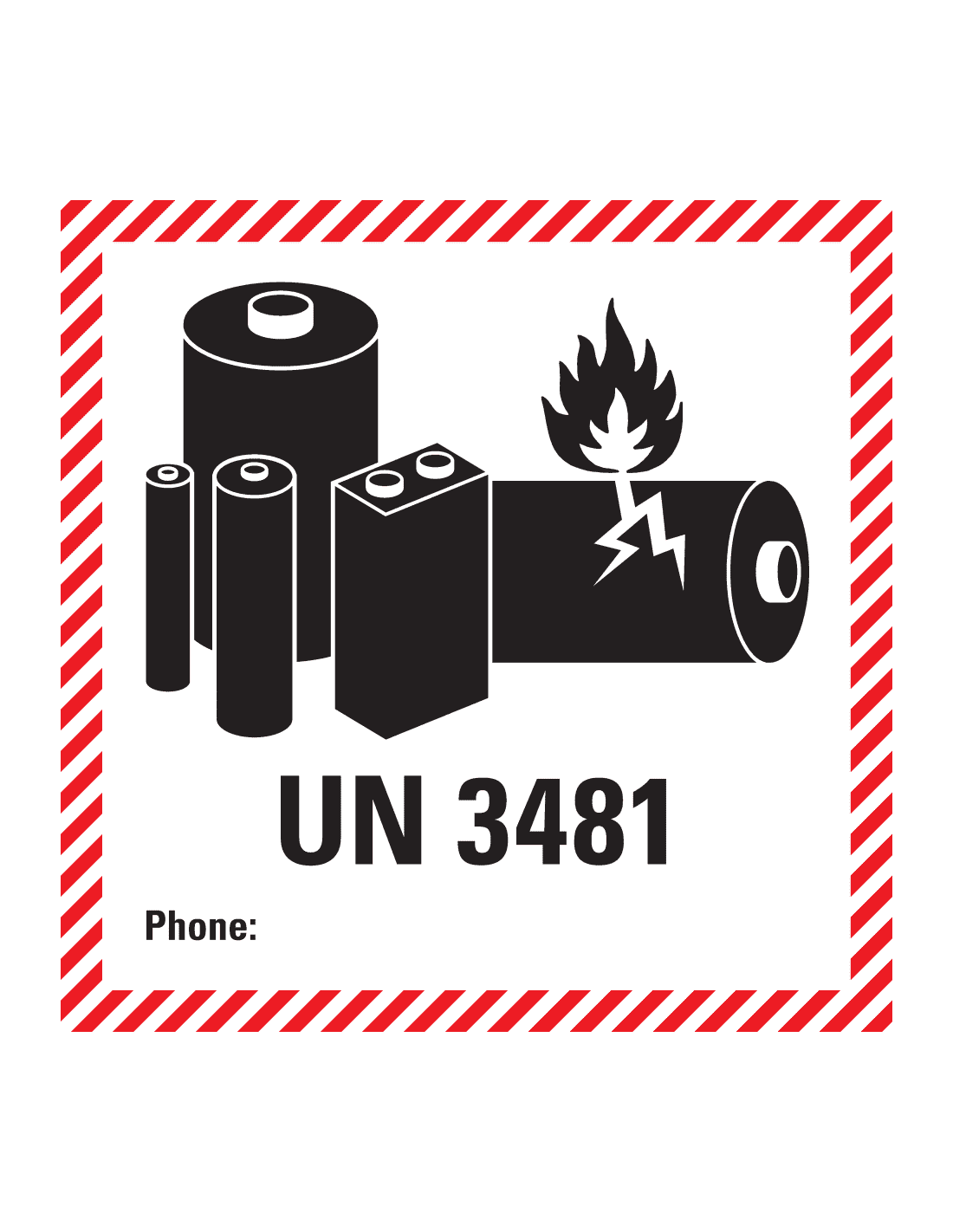 Dit verpakkingsetiket heeft UN3481 op de zeewaterbestendige sticker staan. Dit betekent dat er Ion-batterijen in de apparatuur zitten. Het etiket moet gebruikt worden om verpakkingen aan te geven. Deze verpakkingen kunnen bijvoorbeeld dozen zijn.