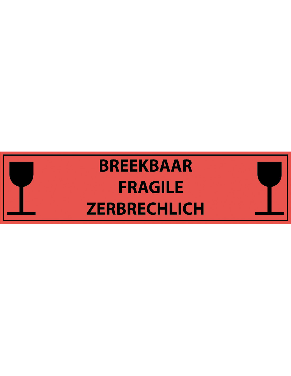 Verder is de breekbaar 3-talig sticker, oranje zwart gemaakt van zelfklevende folie en beschikbaar in verschillende afmetingen. De sticker hecht het beste op een gladde, vetvrije ondergrond. Voor de bevestiging van de sticker kun je het beste gebruikmaken van een rakel.