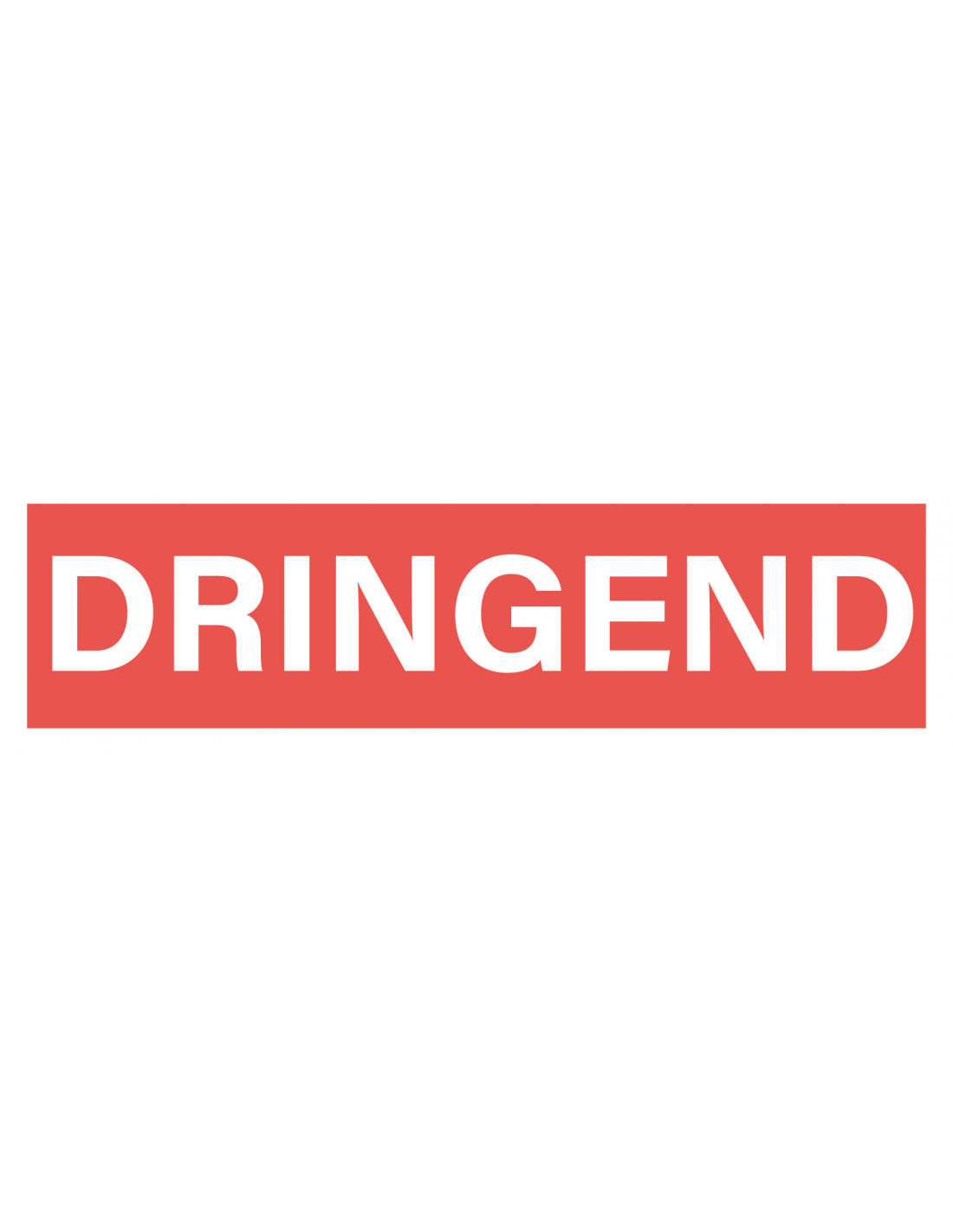 Verder is de dringend sticker, oranje wit gemaakt van zelfklevende folie en beschikbaar in verschillende afmetingen. De sticker hecht het beste op een gladde, vetvrije ondergrond. Voor de bevestiging van de sticker kun je het beste gebruikmaken van een rakel.
