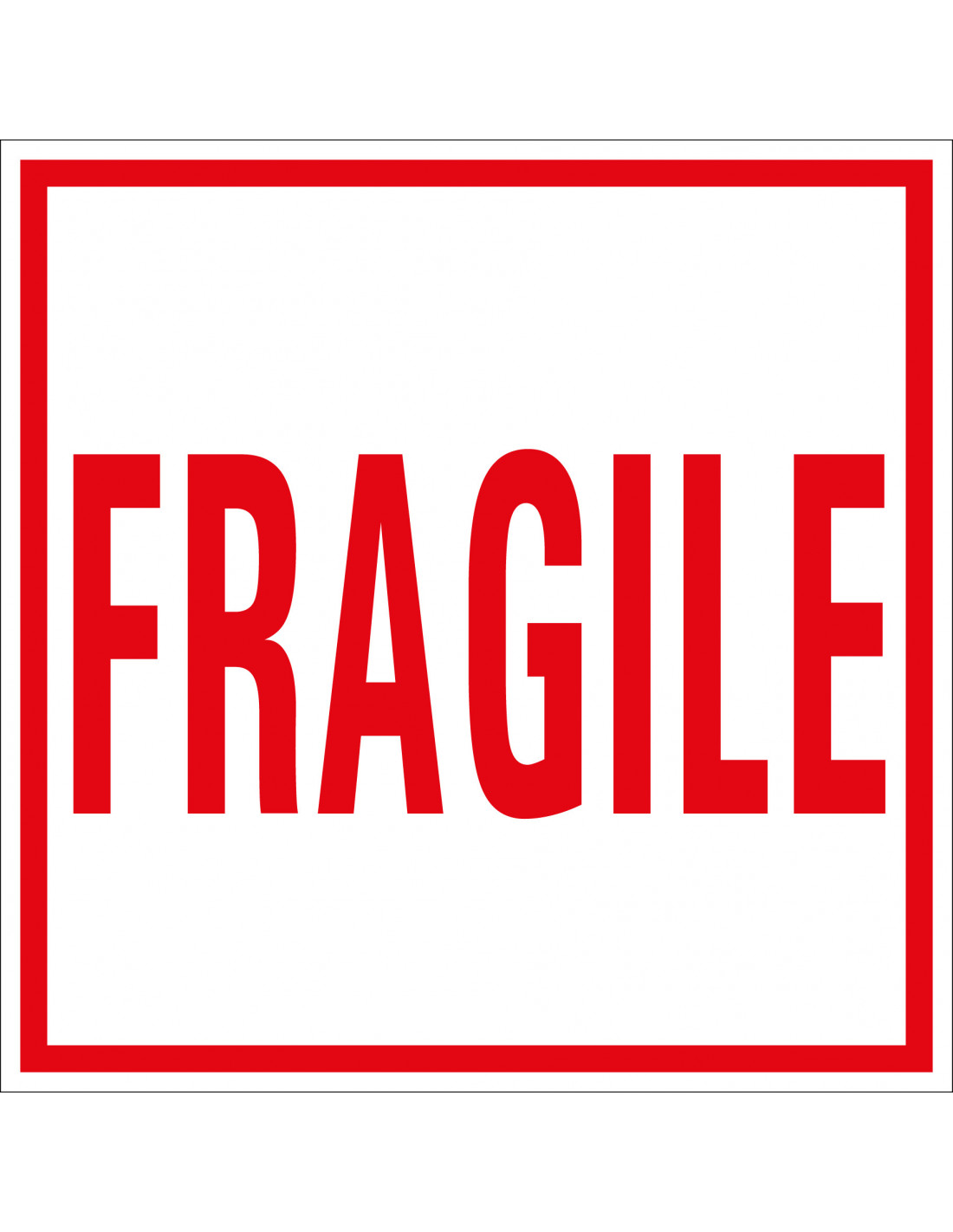 Verder is de fragile tekststicker, rood wit gemaakt van zelfklevende folie en beschikbaar in verschillende afmetingen. De sticker hecht het beste op een gladde, vetvrije ondergrond. Voor de bevestiging van de sticker kun je het beste gebruikmaken van een rakel.