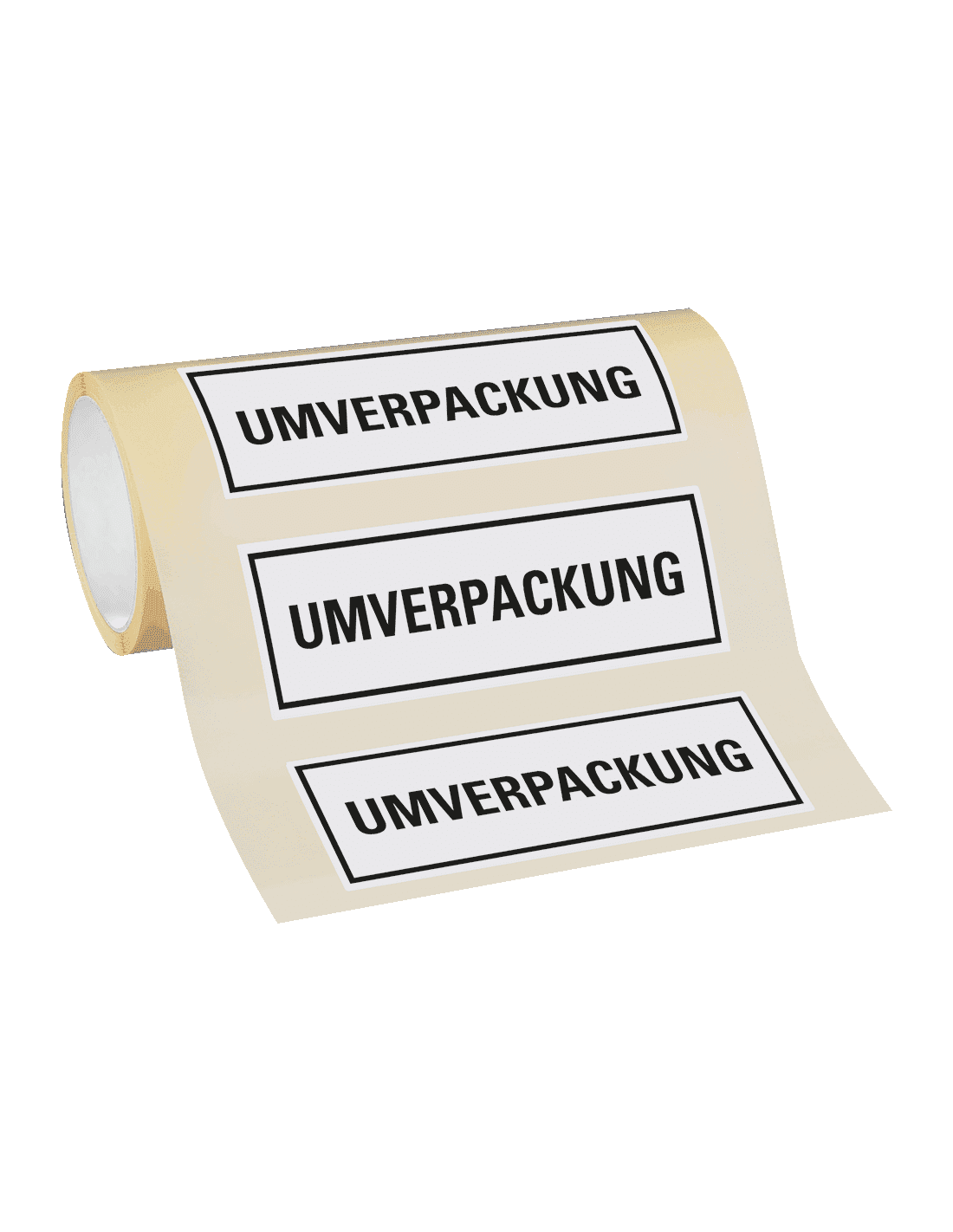 Verder is de umverpackung sticker gemaakt van zeewaterbestendige zelfklevende folie. Dit maakt hem zeer geschikt voor transport over het water. Deze sticker kun je bestellen in een afmeting van 147 x 50 mm en is verpakt op een rol van 500 stickers. Omdat deze sticker op een rol wordt geleverd profiteer je van een voordelige prijs voor een groot aantal stickers.