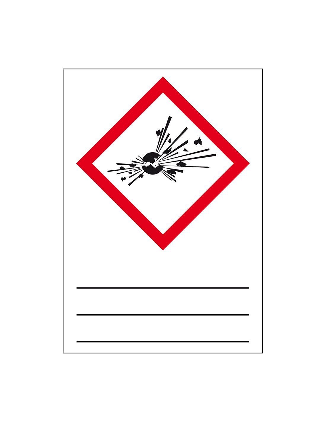 GHS / CLP is een afkorting van Globally Harmonised System of Classification and Labelling of Chemicals. GHS / CLP etiketten worden gebruikt om gevaarlijke stoffen zo goed mogelijk in te delen. GHS01 stickers geven het gevaar aan voor ontplofbare stoffen, oftewel explosieve stoffen. Een explosiegevaar is een van de grootste gevaren voor de werkplek. Een grote explosie is niet alleen desastreus voor de werkplek, maar ook de werknemers zullen er hevig onder lijden. Met de juiste labeling zorgt men ervoor dat deze risico zo laag mogelijk wordt gehouden. De GHS01 sticker is een wereldwijd erkend GHS pictogram om dit duidelijk te maken. Producten in de GHS01 klasse kunnen tot zeer snelle verbranding komen, afhankelijk van de stof zelf, het contact met andere stoffen, temperatuur, schokken of wrijving.