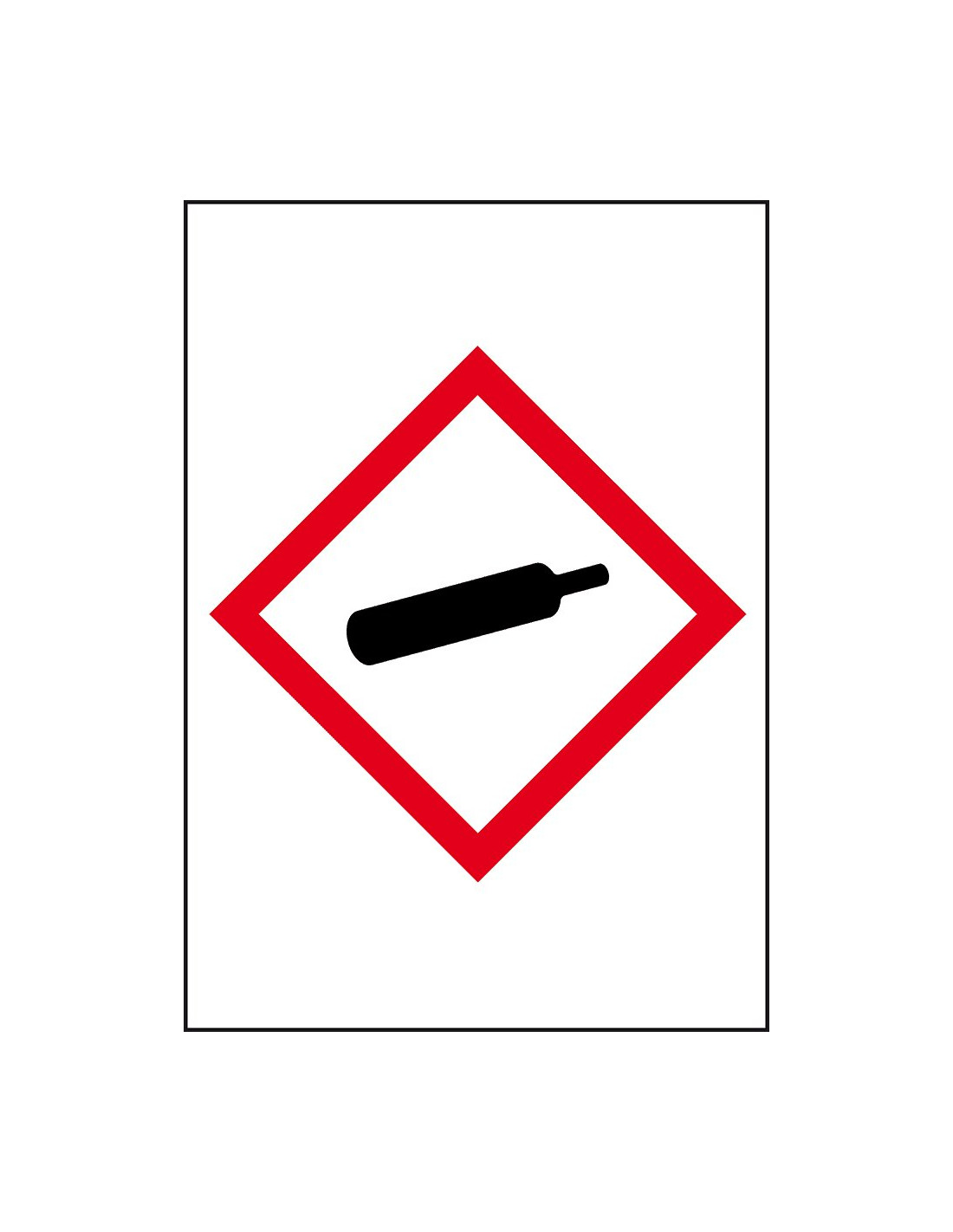 De sticker gassen onder druk GHS04, is een gevarensymbool dat aanduidt dat hier gevaren kunnen ontstaan. Het materiaal is een zelfklevende folie (sticker) die temperatuurbestendig is van -40 tot +80 °C en is geschikt voor binnen- en beperkt buitengebruik.