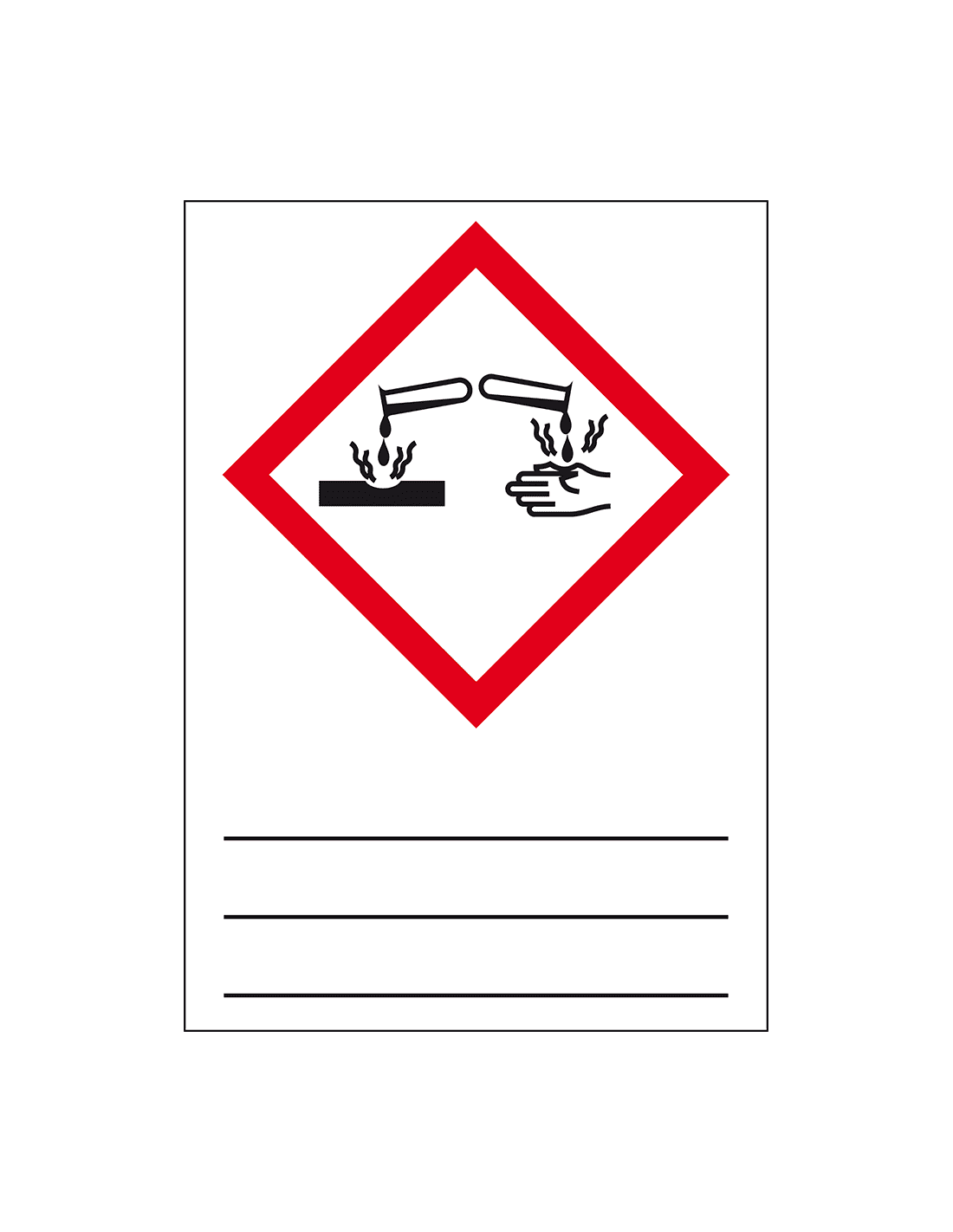 Belangrijkste kenmerken GHS05 bijtende stoffen sticker, beschrijfbaar
