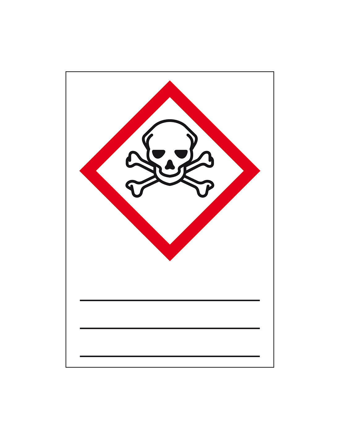Producten met het gevarensymbool GHS06 kunnen verder bij inademing, inslikken of opname door de huid zeer ernstige schade aan de gezondheid veroorzaken. Met kans op (acute) dodelijke afloop.