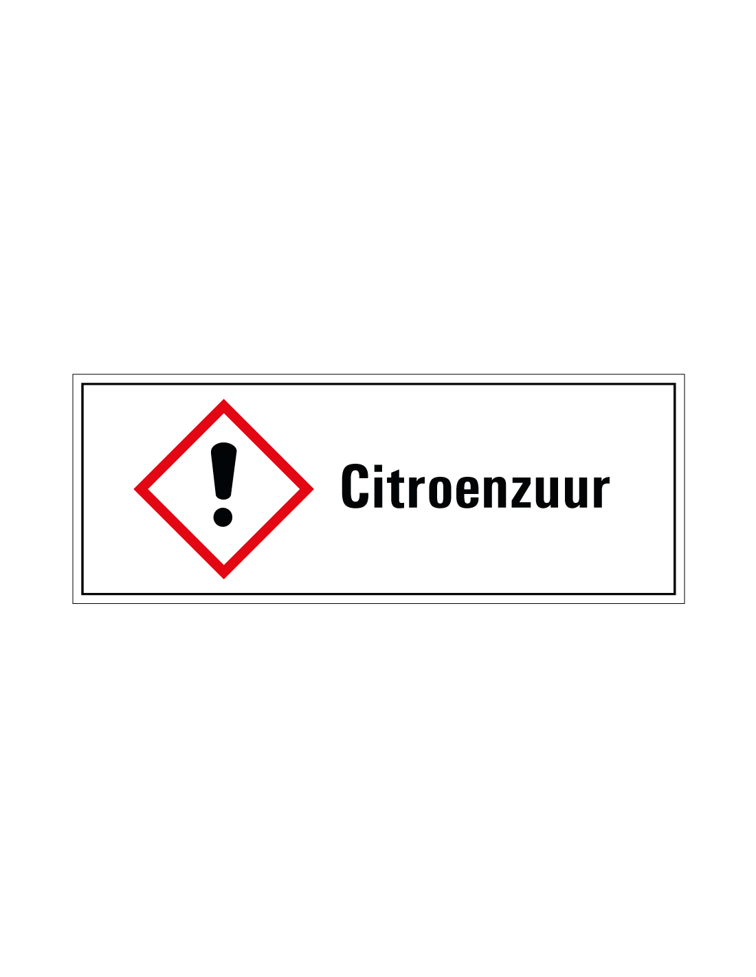 De citroenzuur GHS tekststicker met GHS07 pictogram geeft aan dat met een chemische stof voorzichtig omgegaan moet worden. Er zitten namelijk gevaarlijke chemicaliën in de stof die de gezondheid kunnen schaden.