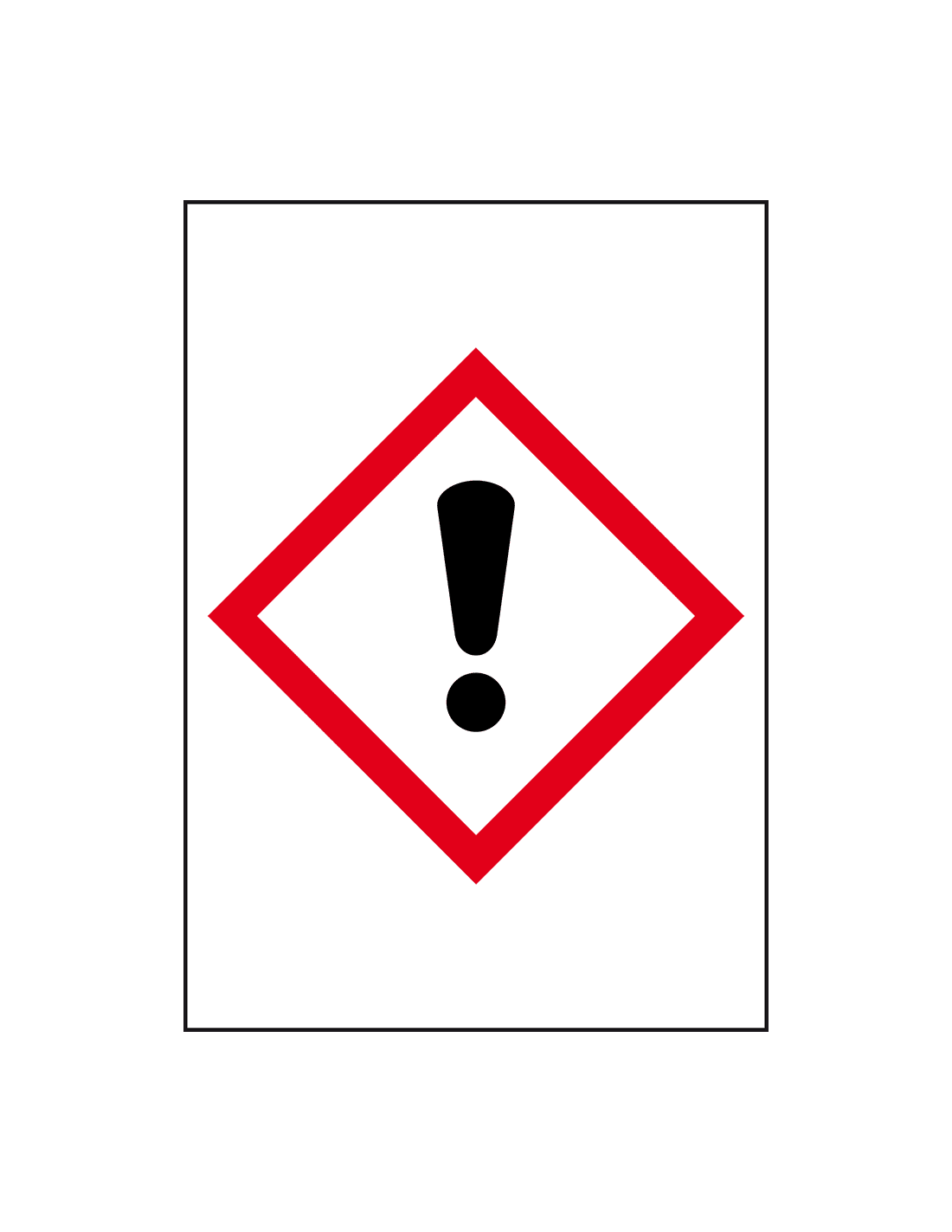 Het GHS07 gevarensymbool irriterende stoffen moet op een product worden geplakt die gevaarlijk zijn om in te slikken, in te ademen of die schadelijk zijn om via de huid op te nemen.