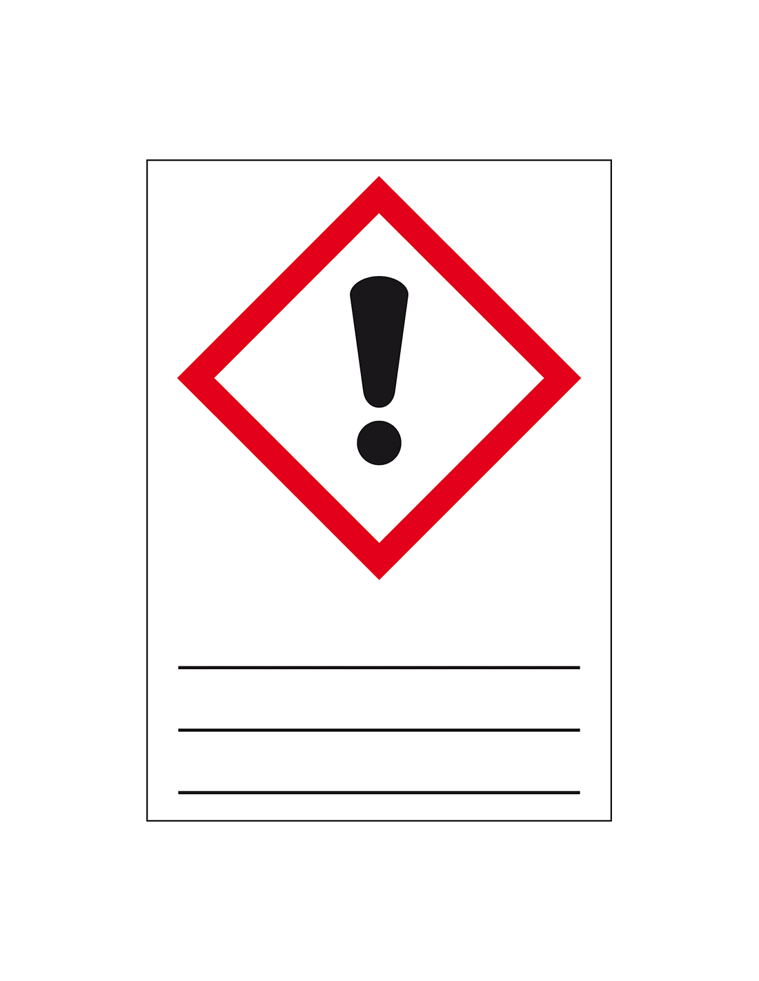 Het GHS07 gevarensymbool irriterende stoffen moet op een product worden geplakt die gevaarlijk zijn om in te slikken, in te ademen of die schadelijk zijn om via de huid op te nemen.