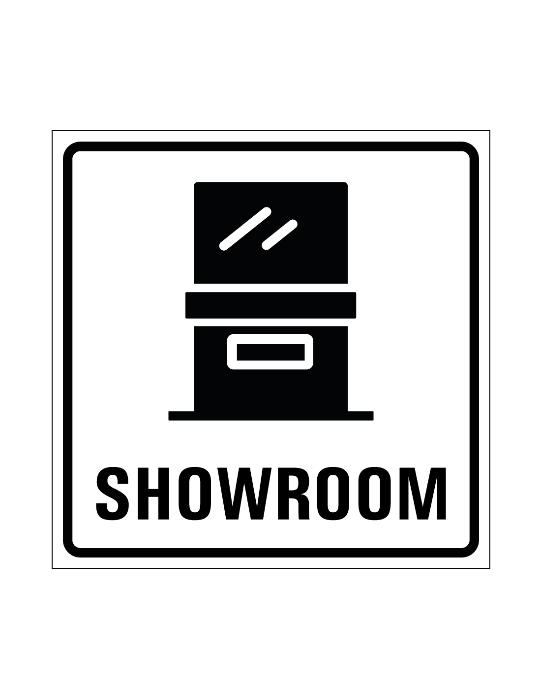 - Met showroom symbool en tekst