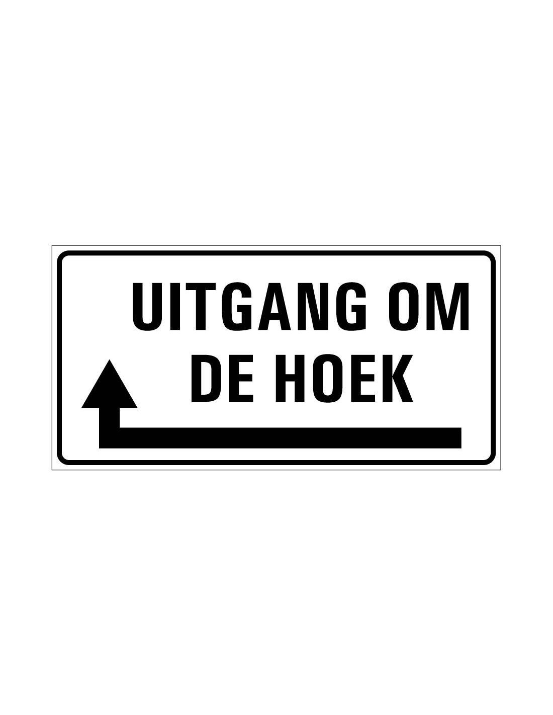 Deze uitgang om de hoek sticker links is ideaal om te gebruiken wanneer een uitgang moeilijk vindbaar is voor bezoekers, klanten of postbezorgers. De sticker is gemaakt van zelfklevende folie en is zwart wit van kleur.