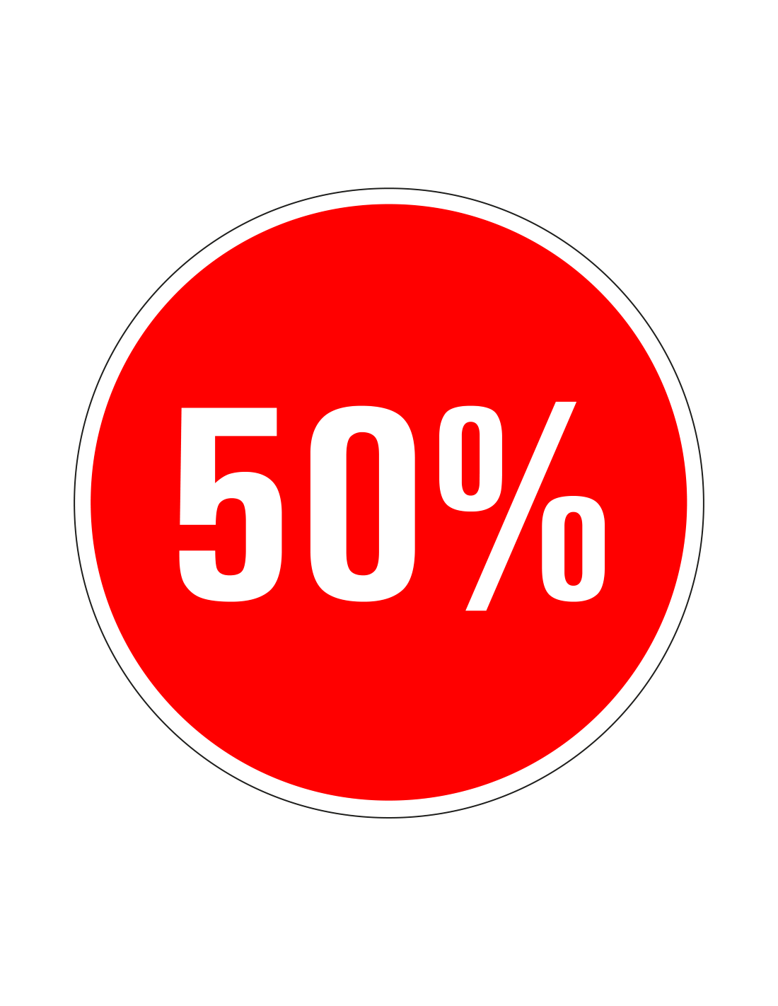 De korting sticker 50% op vel is een ronde sticker met kortingspercentage om aan te geven dat er op dit product een korting van 50% van toepassing is. De sticker is voorzien van een kortingspercentage in witte letters op een rode achtergrond. De sticker is verkrijgbaar in verschillende afmetingen en verschillende aantallen op vel en is geschikt voor binnen- en beperkt buitengebruik.
