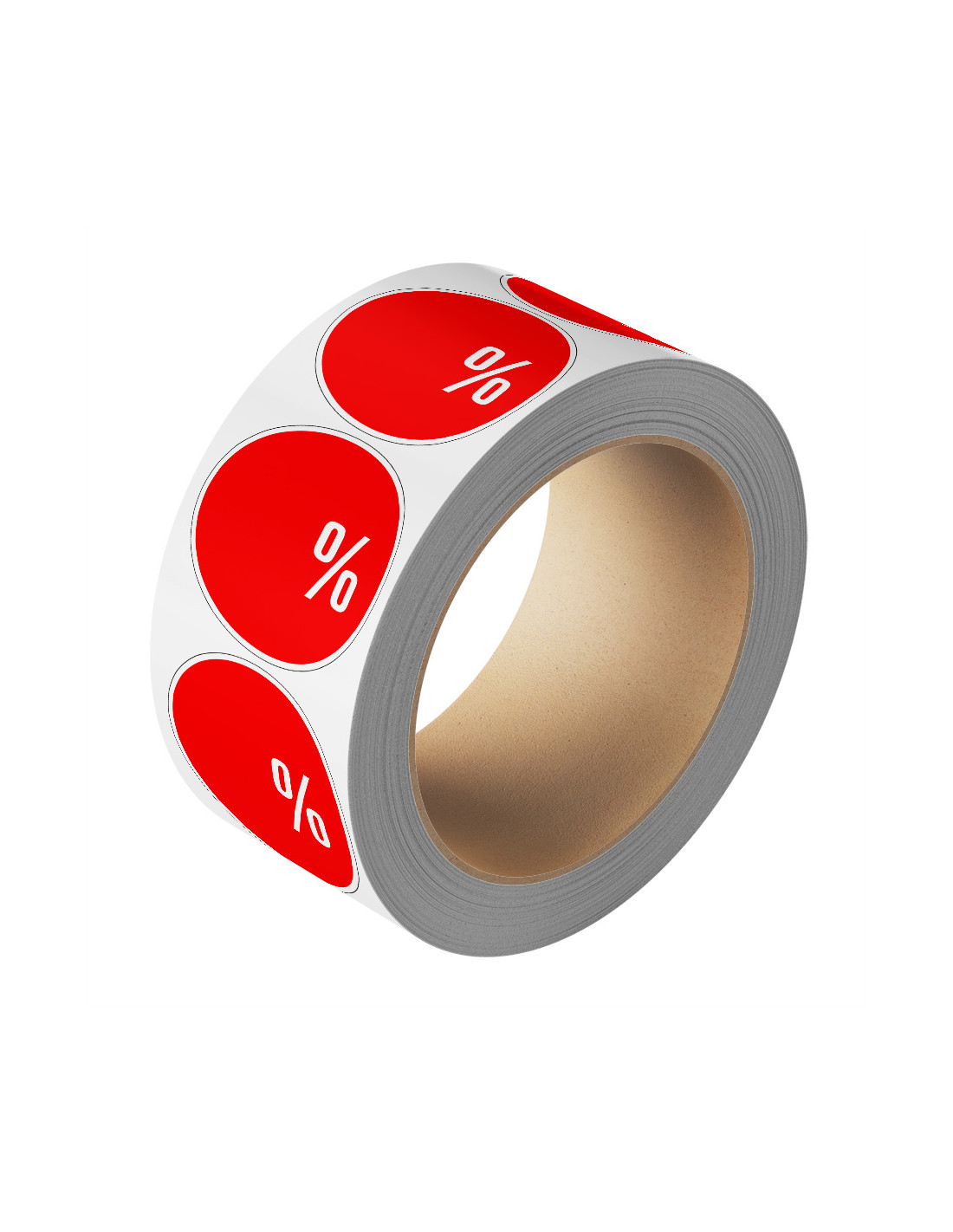 De korting sticker naar wens op rol is een ronde sticker met kortingspercentage om aan te geven dat er op dit product een bepaalde korting van toepassing is. Dit percentage kun je naar wens invullen met behulp van onze online live editor. De stickers zijn voorzien van een kortingspercentage in witte letters op een rode achtergrond. De stickers zijn verkrijgbaar in verschillende afmetingen en verschillende aantallen op rol.