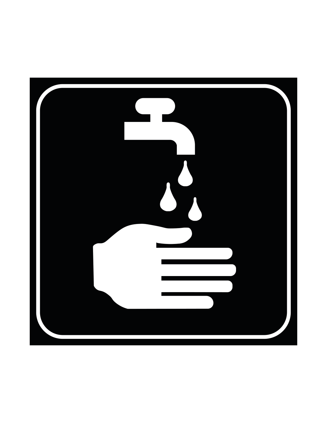 - Vierkante sticker met symbool kraan, hand en waterdruppels