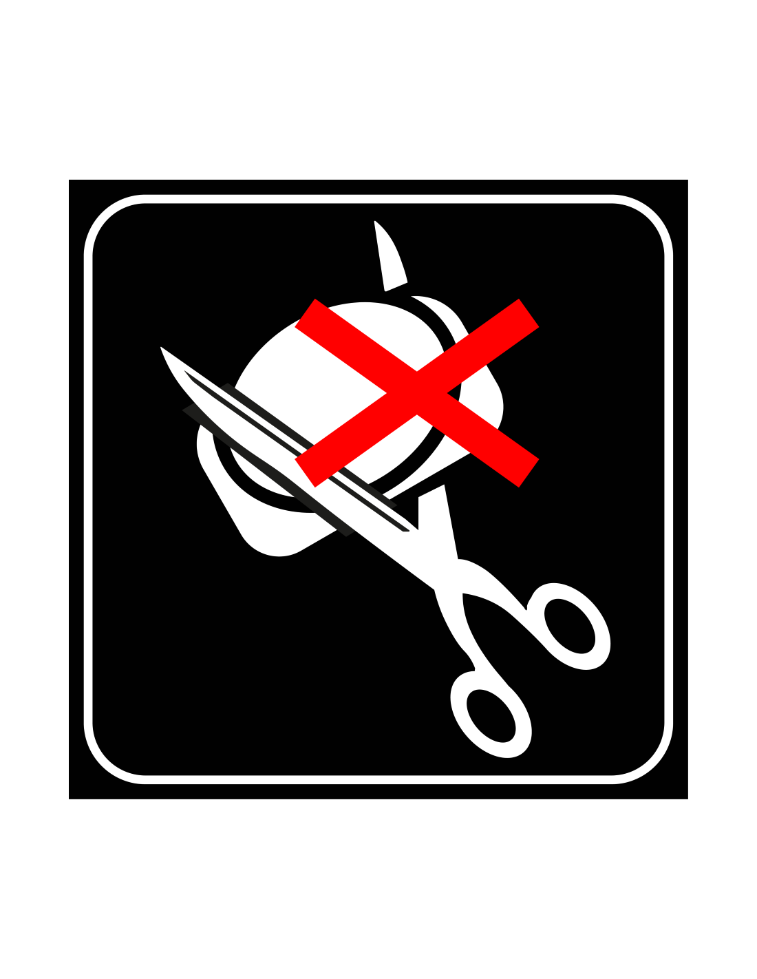 De Niet snijden, knippen of doorboren sticker met het symbool van een schaar, een product en een rood kruis om aan te geven dat je dit product niet mag snijden, knippen of doorboren. De sticker is voorzien van een wit symbool op een zwarte achtergrond. De sticker is verkrijgbaar in verschillende afmetingen en is geschikt voor binnen- en beperkt buitengebruik.